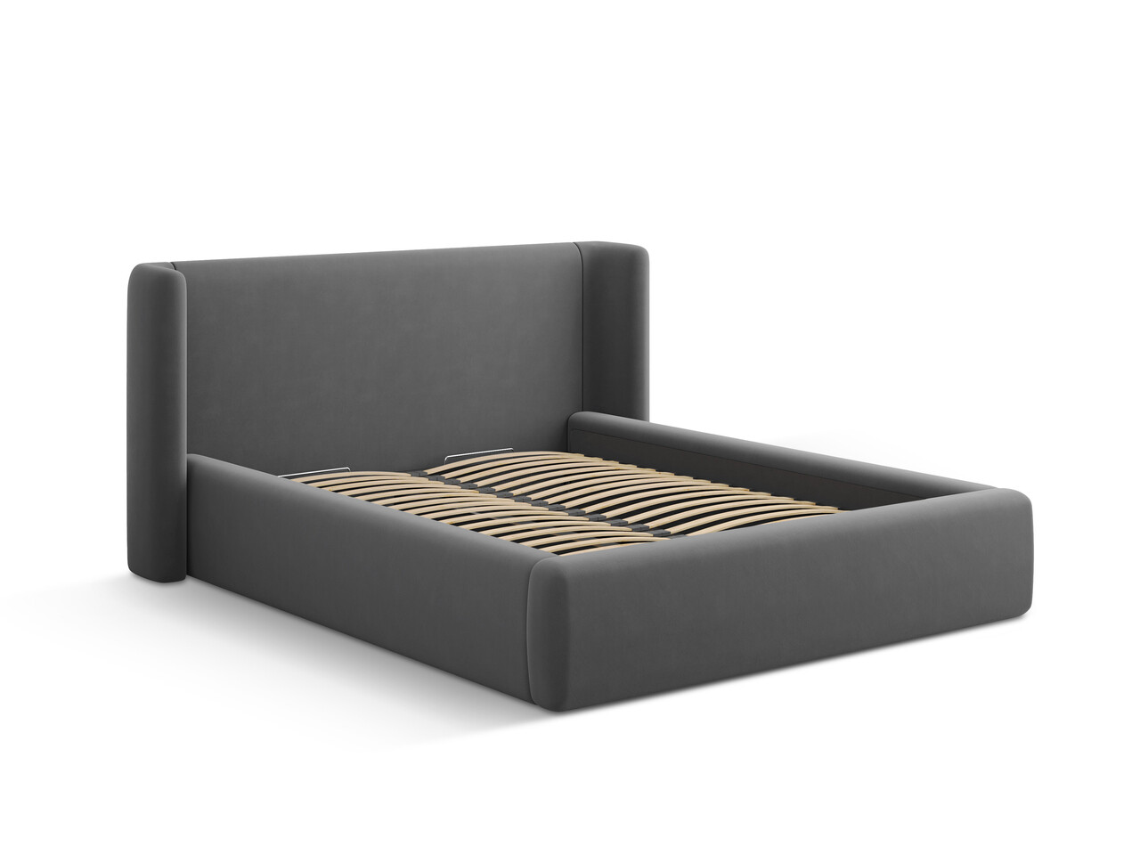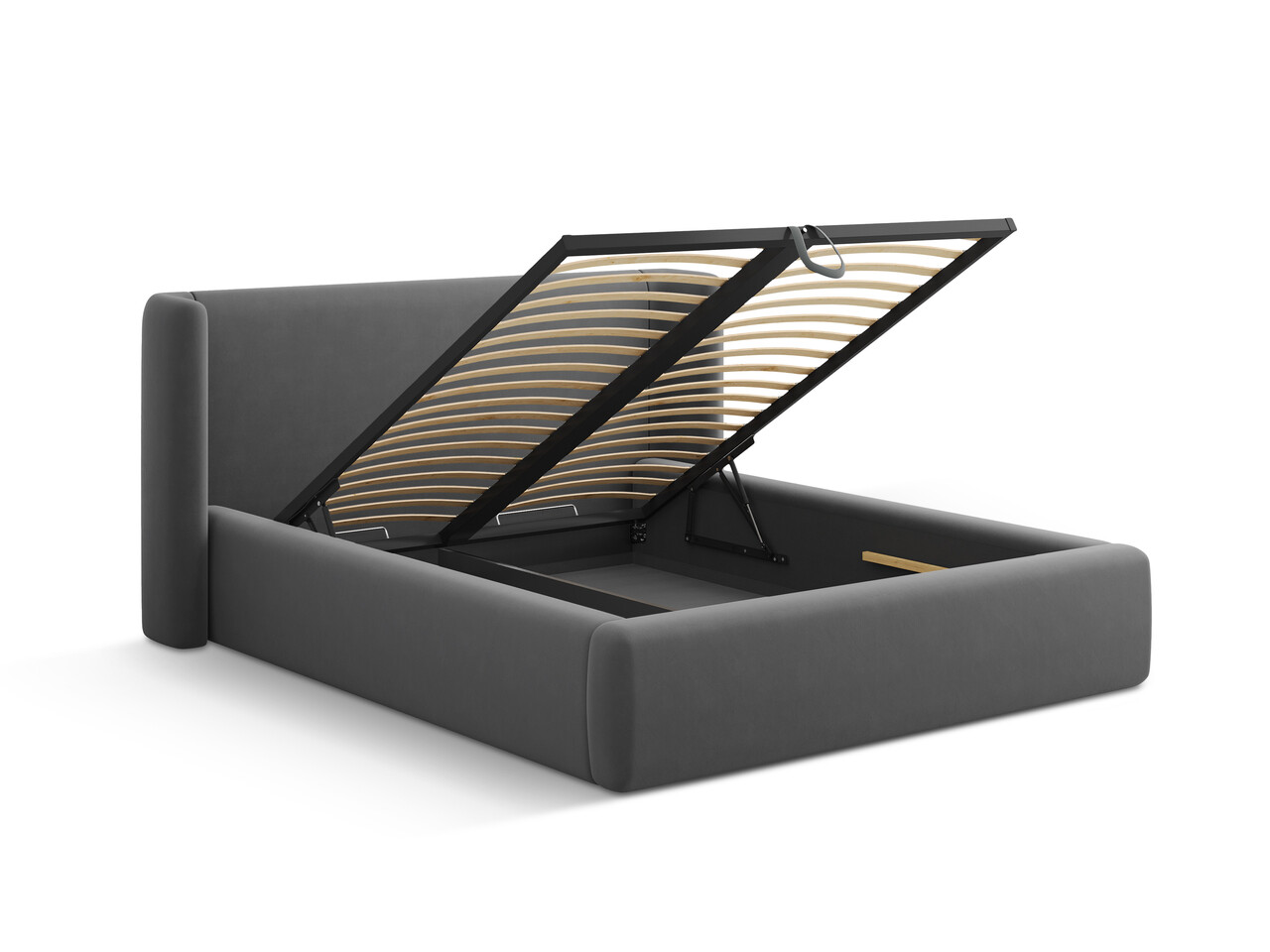 Pat tapitat cu somiera rabatabila si lada depozitare, 180x200 cm, Windsor & Co, Jason, catifea, gri