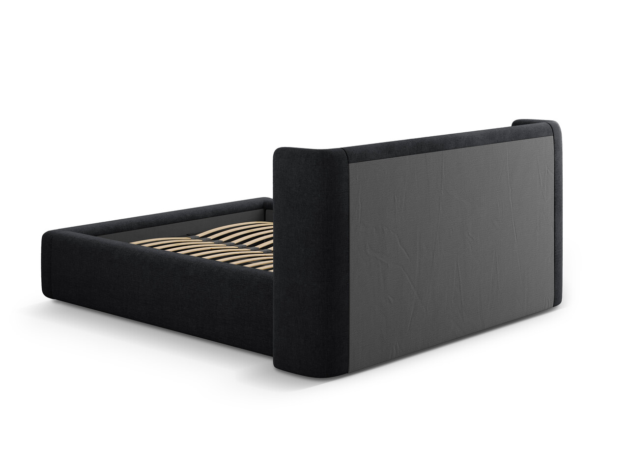 Pat tapitat cu somiera rabatabila si lada depozitare, 180x200 cm, Windsor & Co, Jason, tesatura structurata, negru