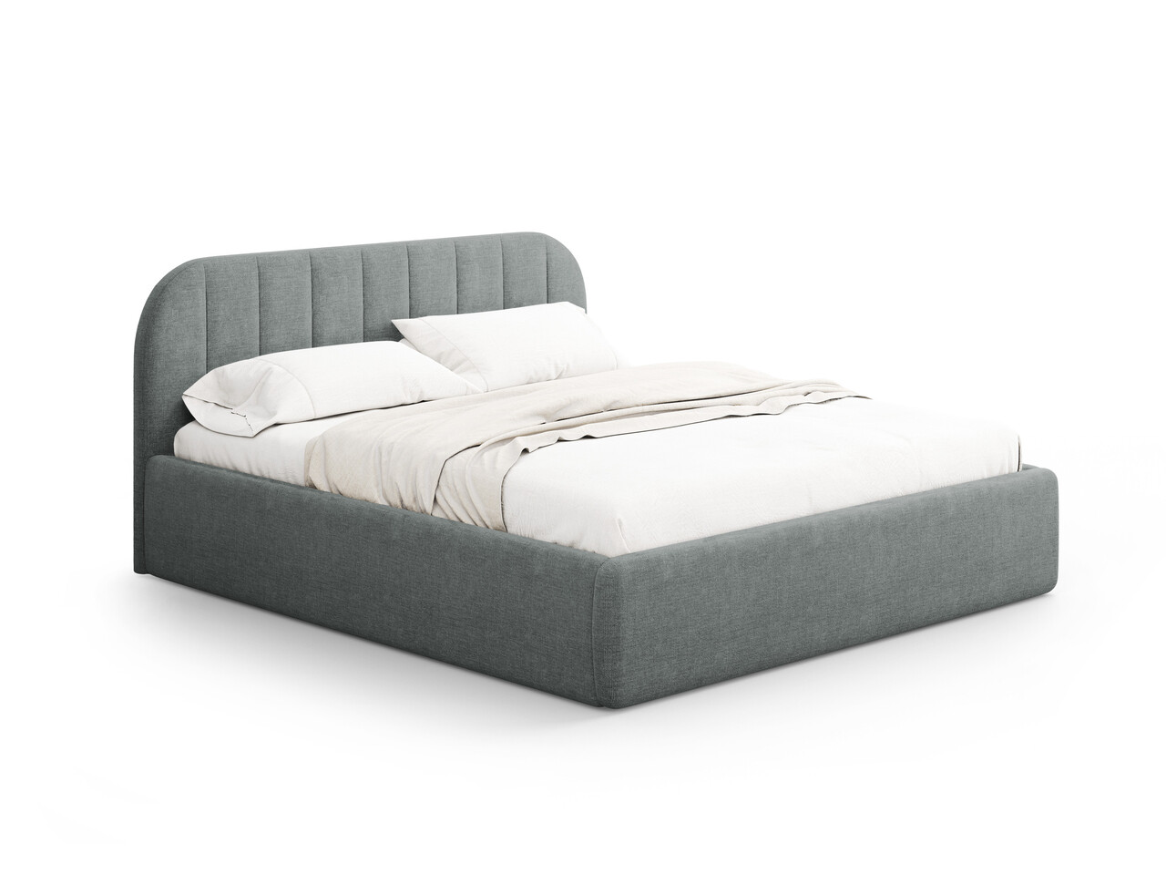 Pat tapitat cu somiera rabatabila si lada depozitare, 180x200 cm, Windsor & Co, Juno, tesatura structurata, gri inchis