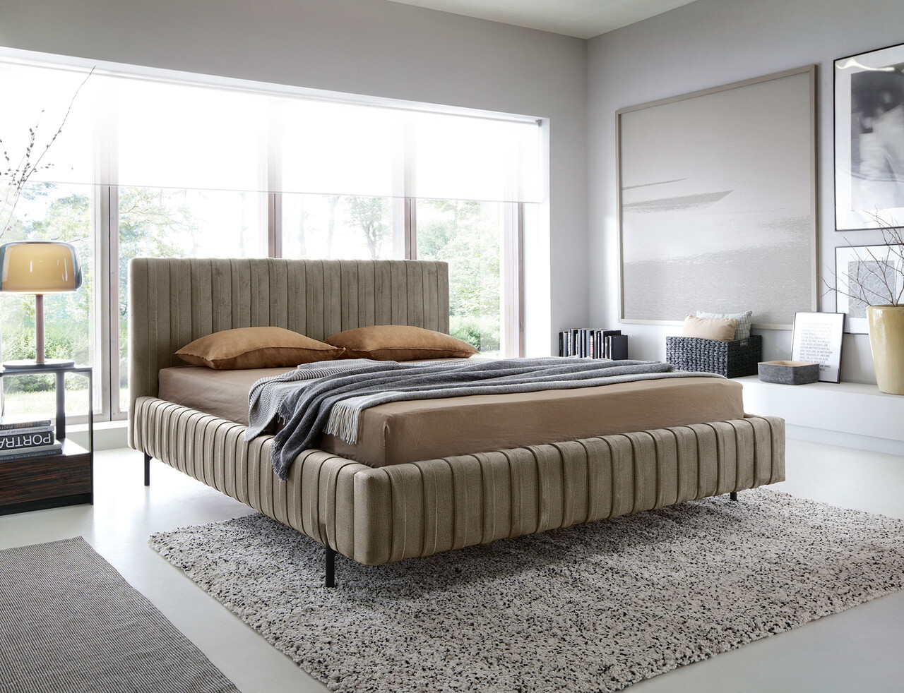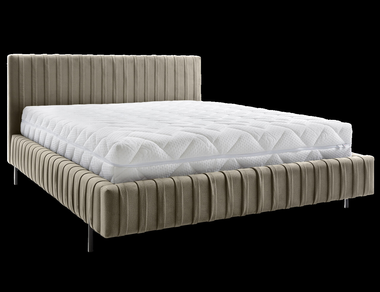 Pat tapitat cu somiera rabatabila si lada depozitare, 180x200 cm, ELTAP, Plissa, metal/poliester, maro deschis