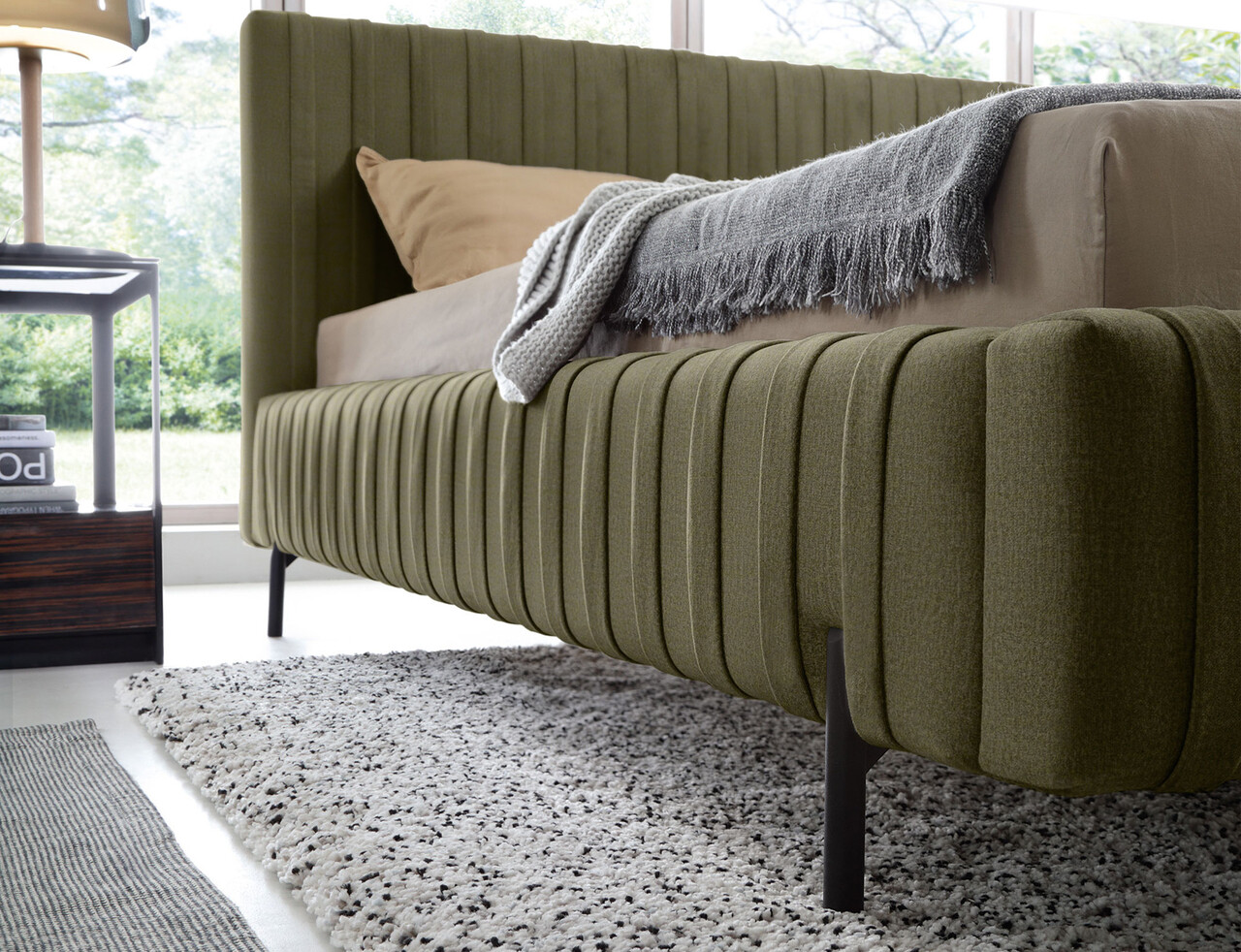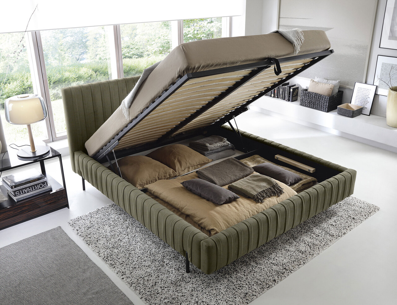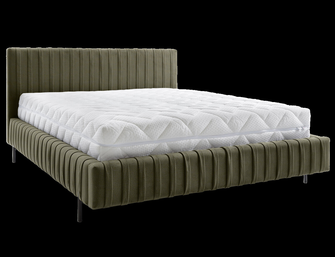 Pat tapitat cu somiera rabatabila si lada depozitare, 180x200 cm, ELTAP, Plissa, metal/poliester, verde olive