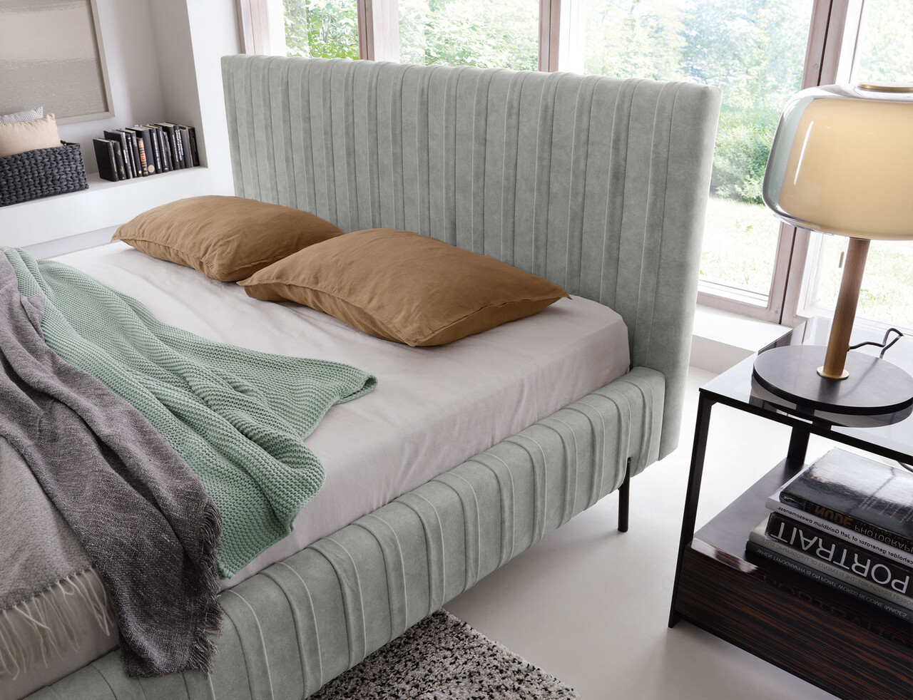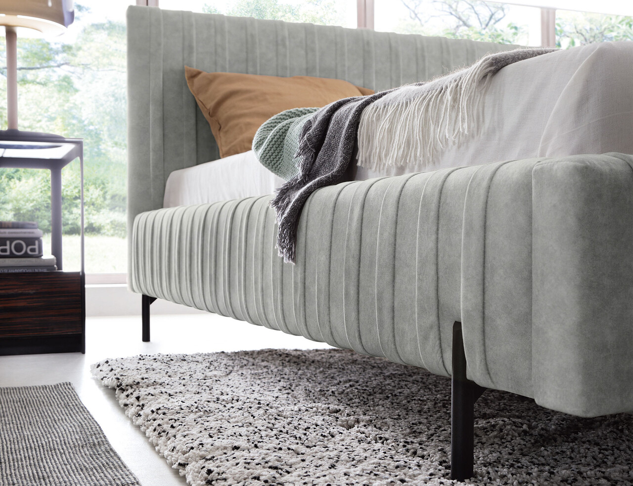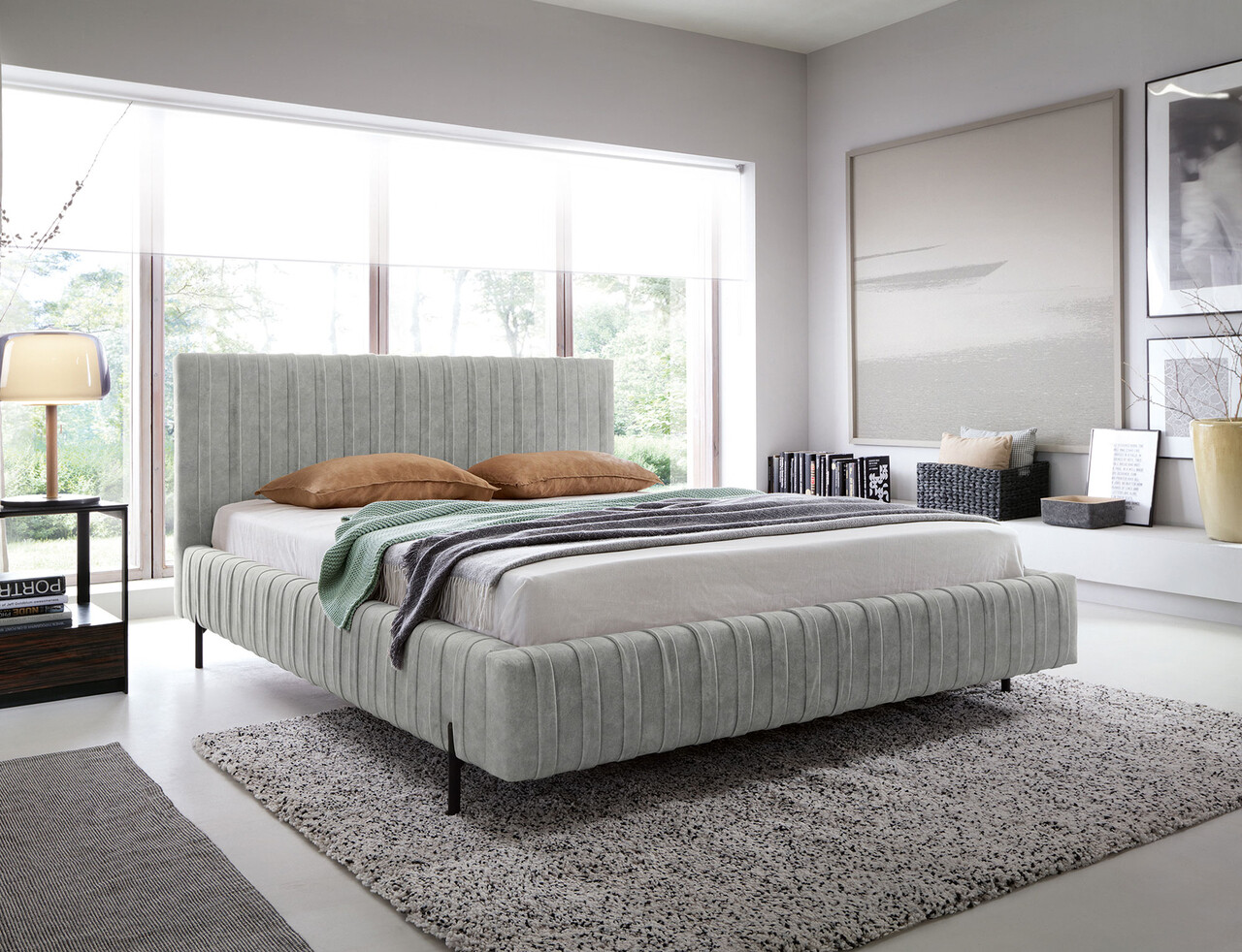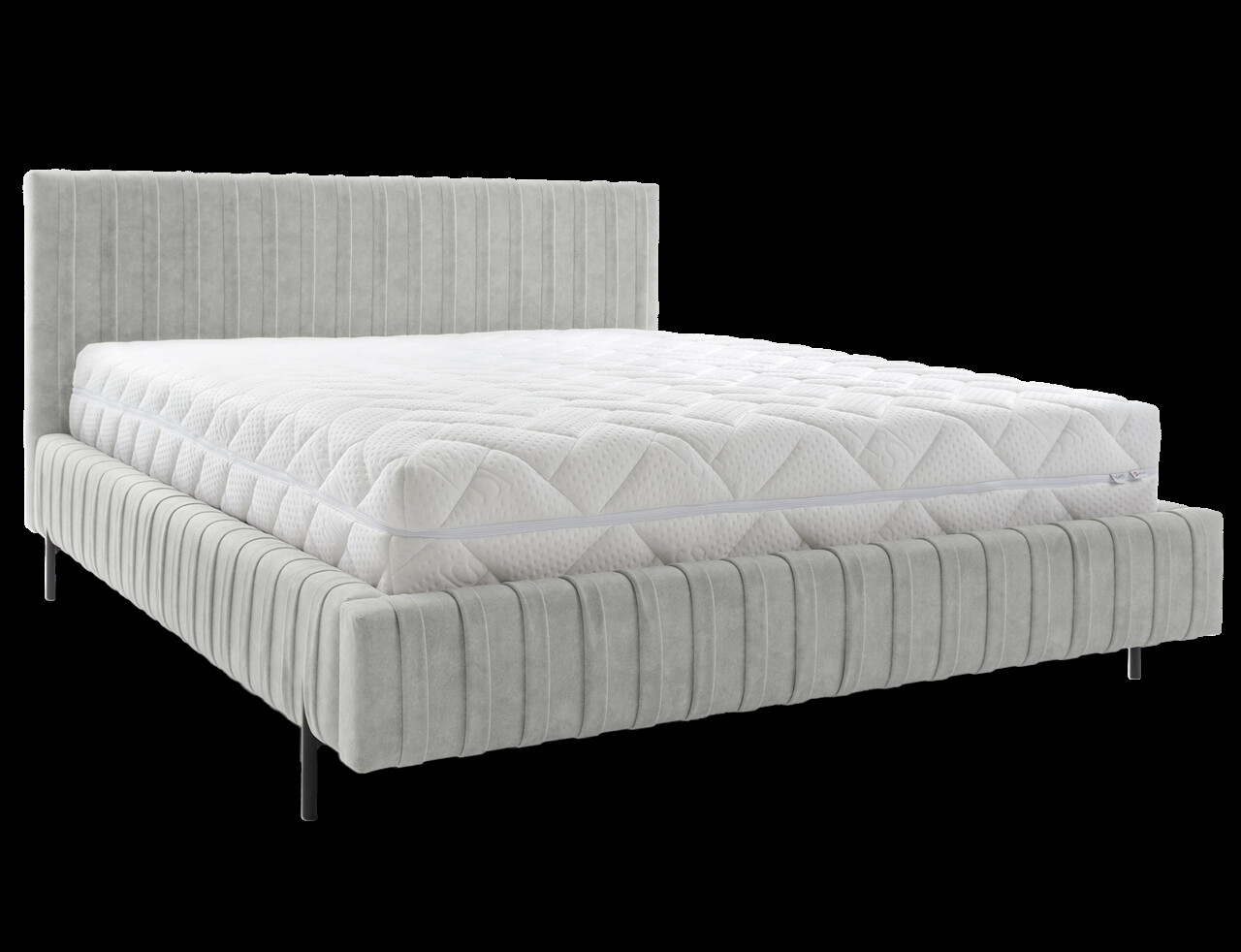 Pat tapitat cu somiera rabatabila si lada depozitare, 180x200 cm, ELTAP, Plissa, metal/poliester, gri deschis