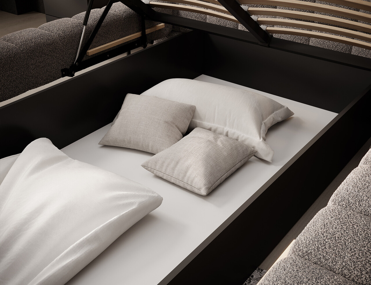 Pat tapitat cu somiera rabatabila si lada depozitare, 180x200 cm, ELTAP, Magentta, metal/poliester, maro