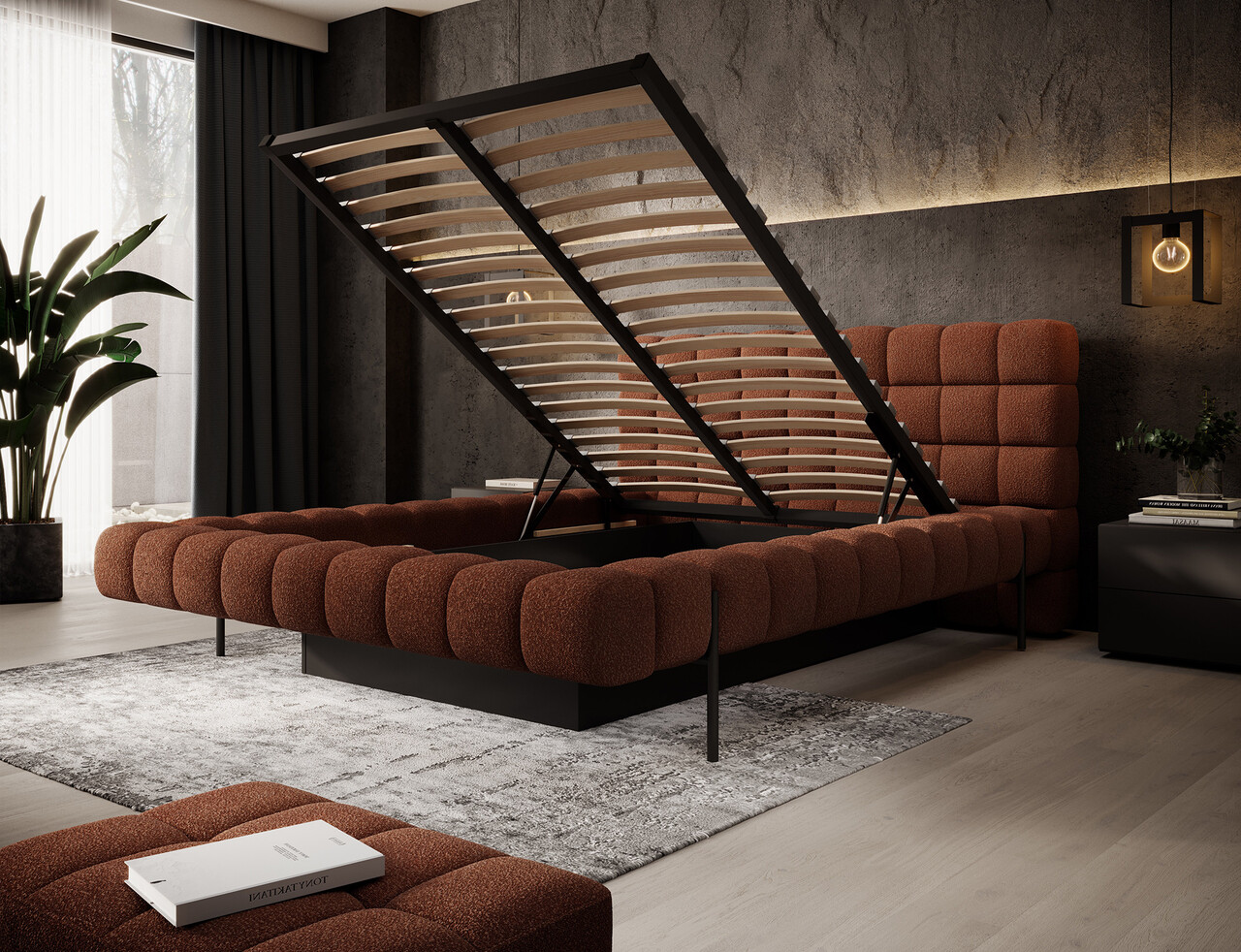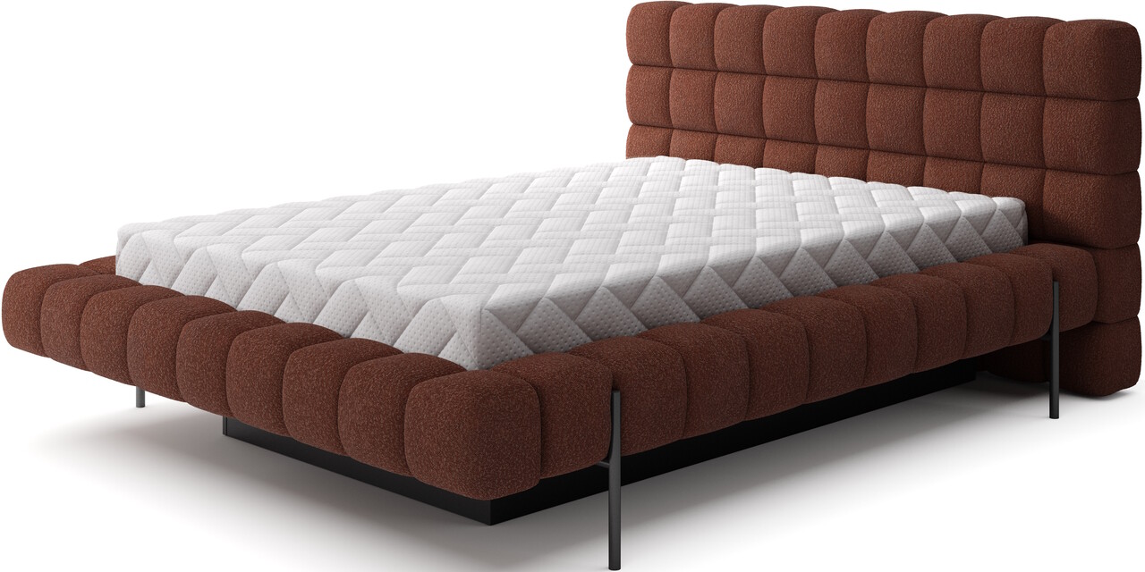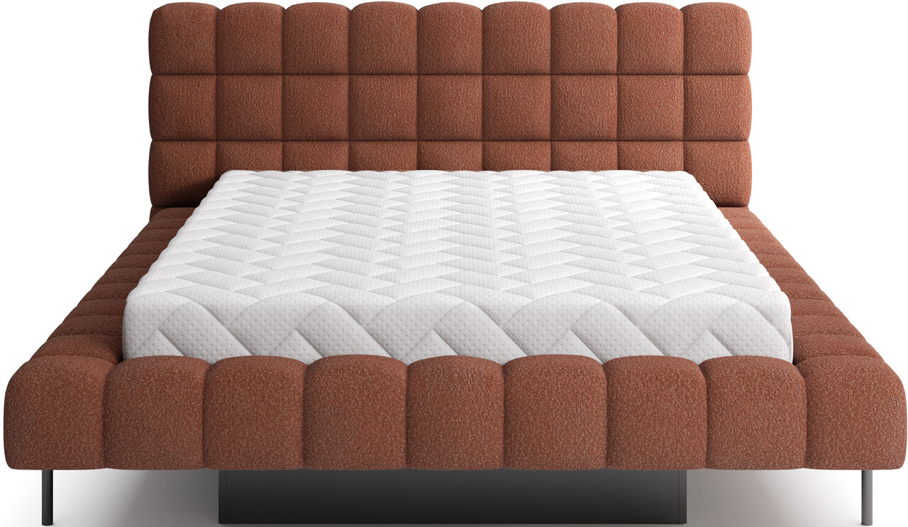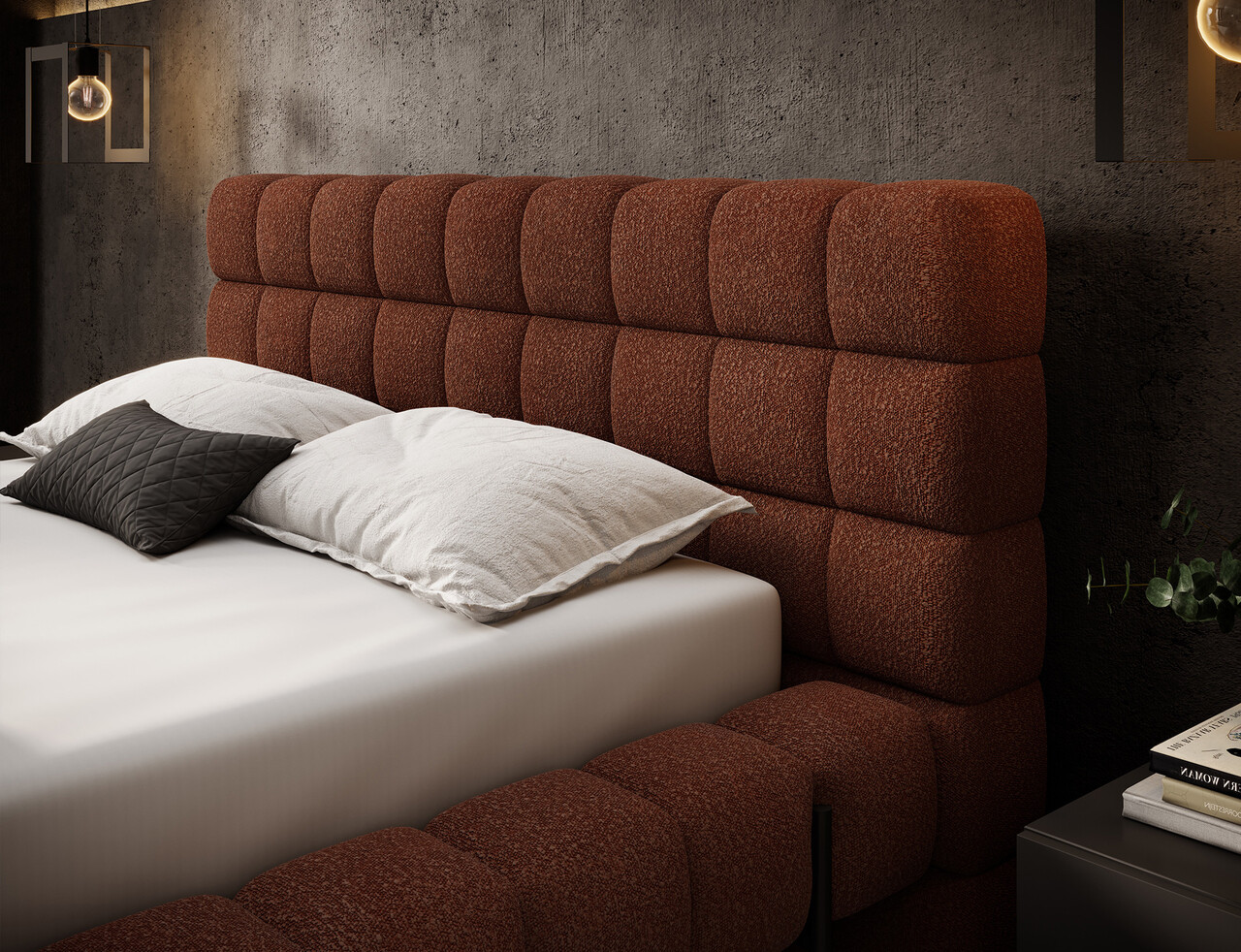 Pat tapitat cu somiera rabatabila si lada depozitare, 180x200 cm, ELTAP, Magentta, metal/poliester, caramiziu