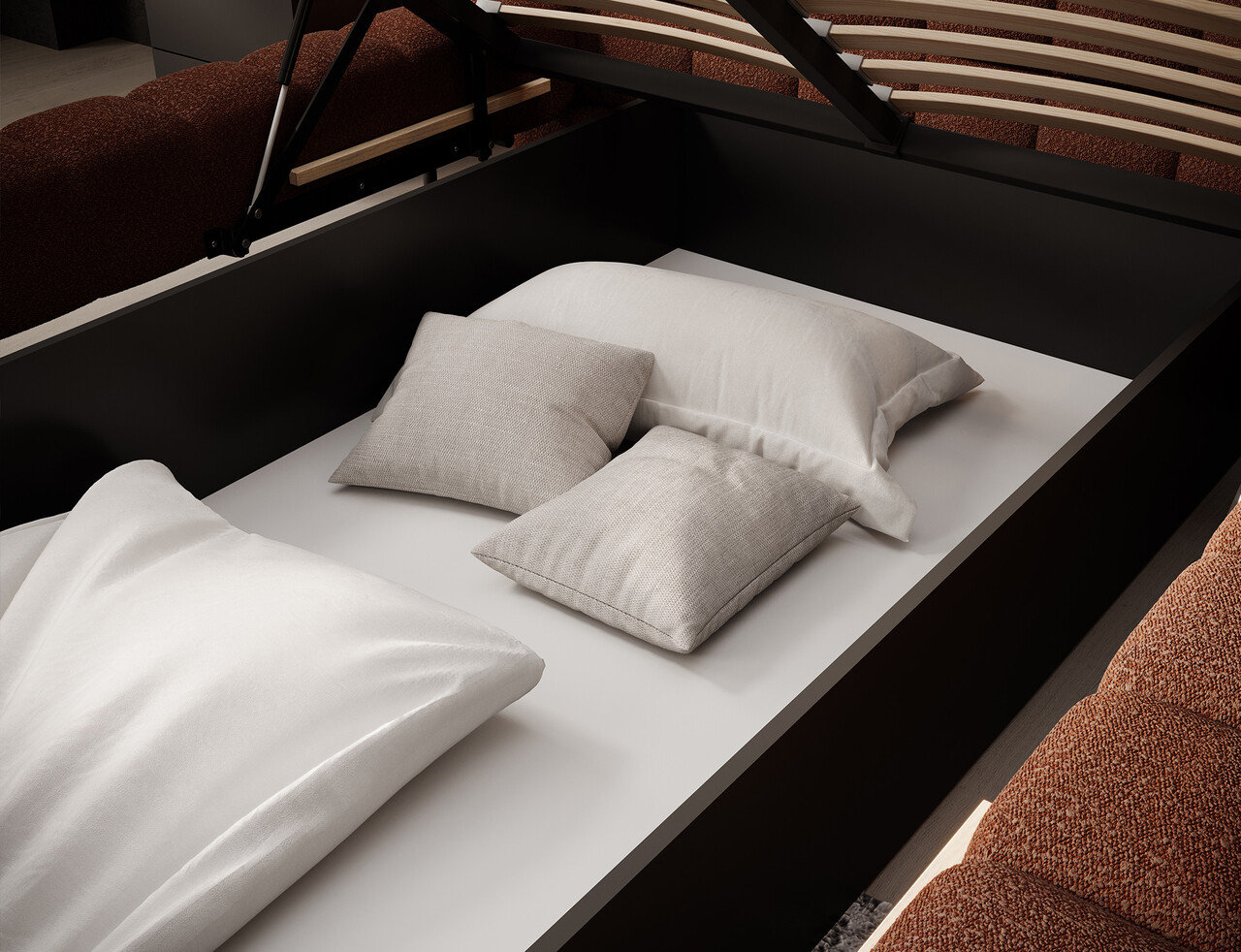 Somiera rabatabila cu piston pe gaz