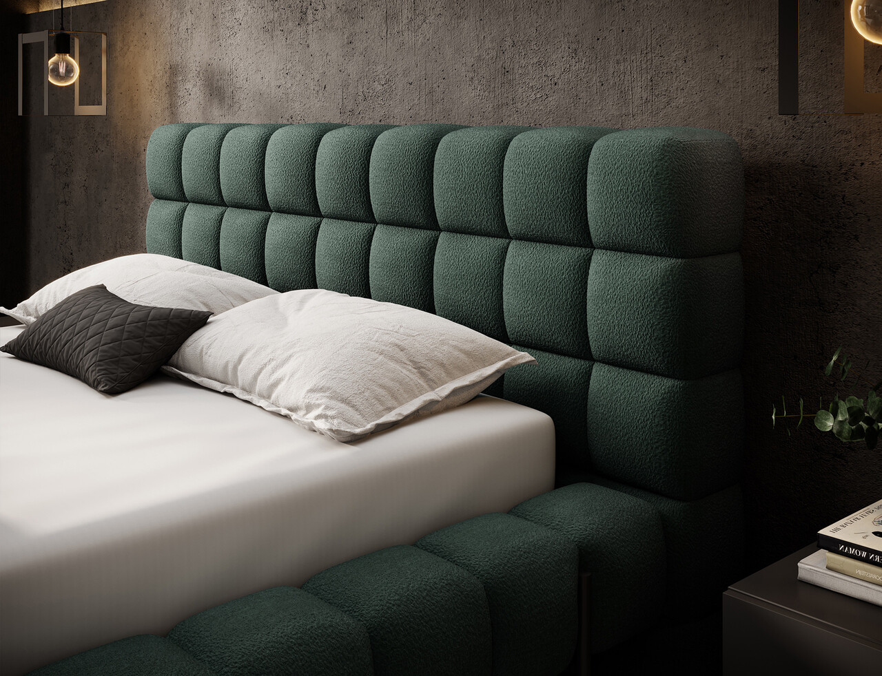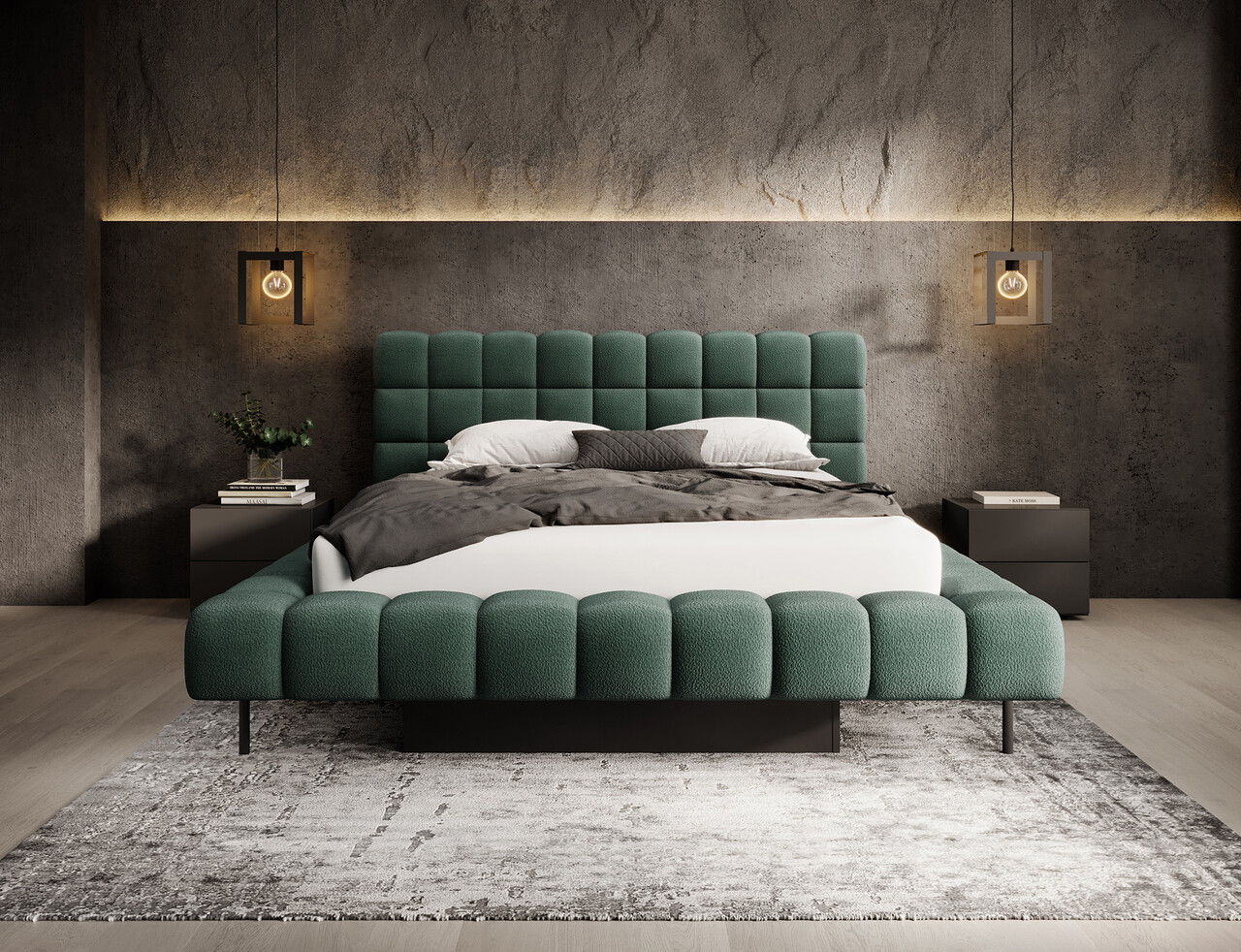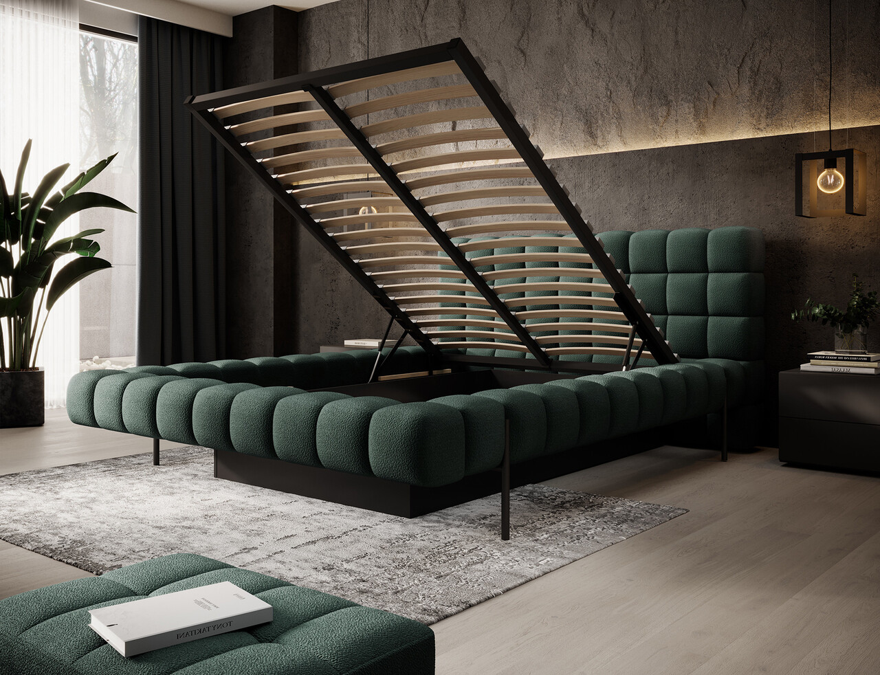 Pat tapitat cu somiera rabatabila si lada depozitare, 180x200 cm, ELTAP, Magentta, metal/poliester, verde inchis
