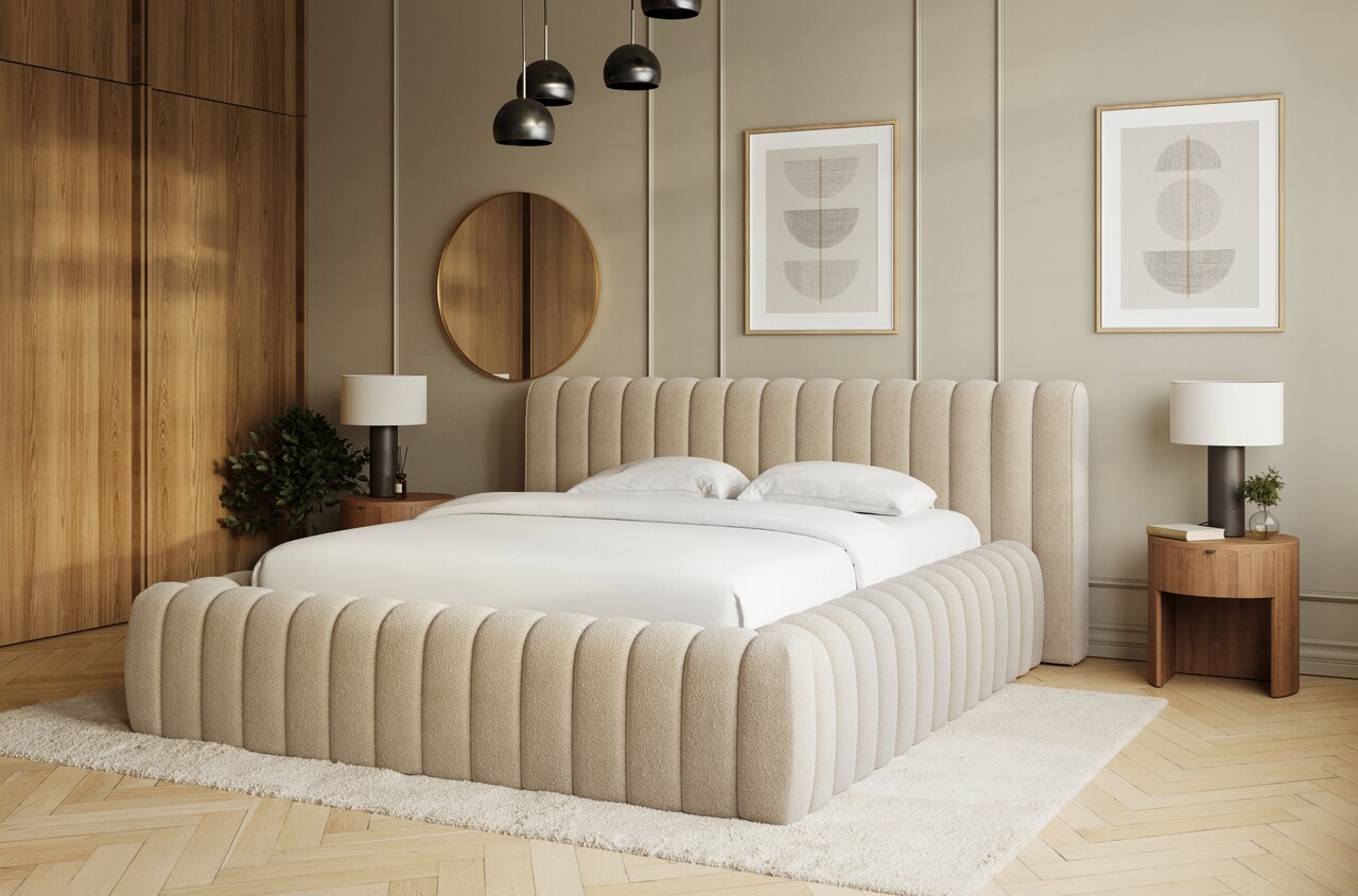 Pat tapitat cu somiera rabatabila si lada depozitare, 180x200 cm, ELTAP, 18ROY-1.8, Carilla, metal/poliester, bej inchis
