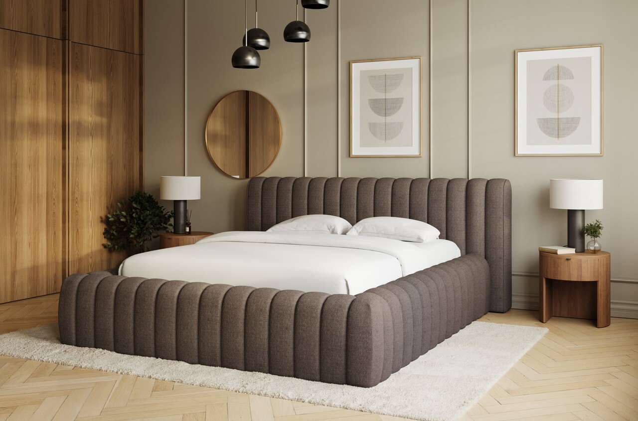 Pat tapitat cu somiera rabatabila si lada depozitare, 180x200 cm, ELTAP, 22TON-1.8, Carilla, metal/poliester, maro