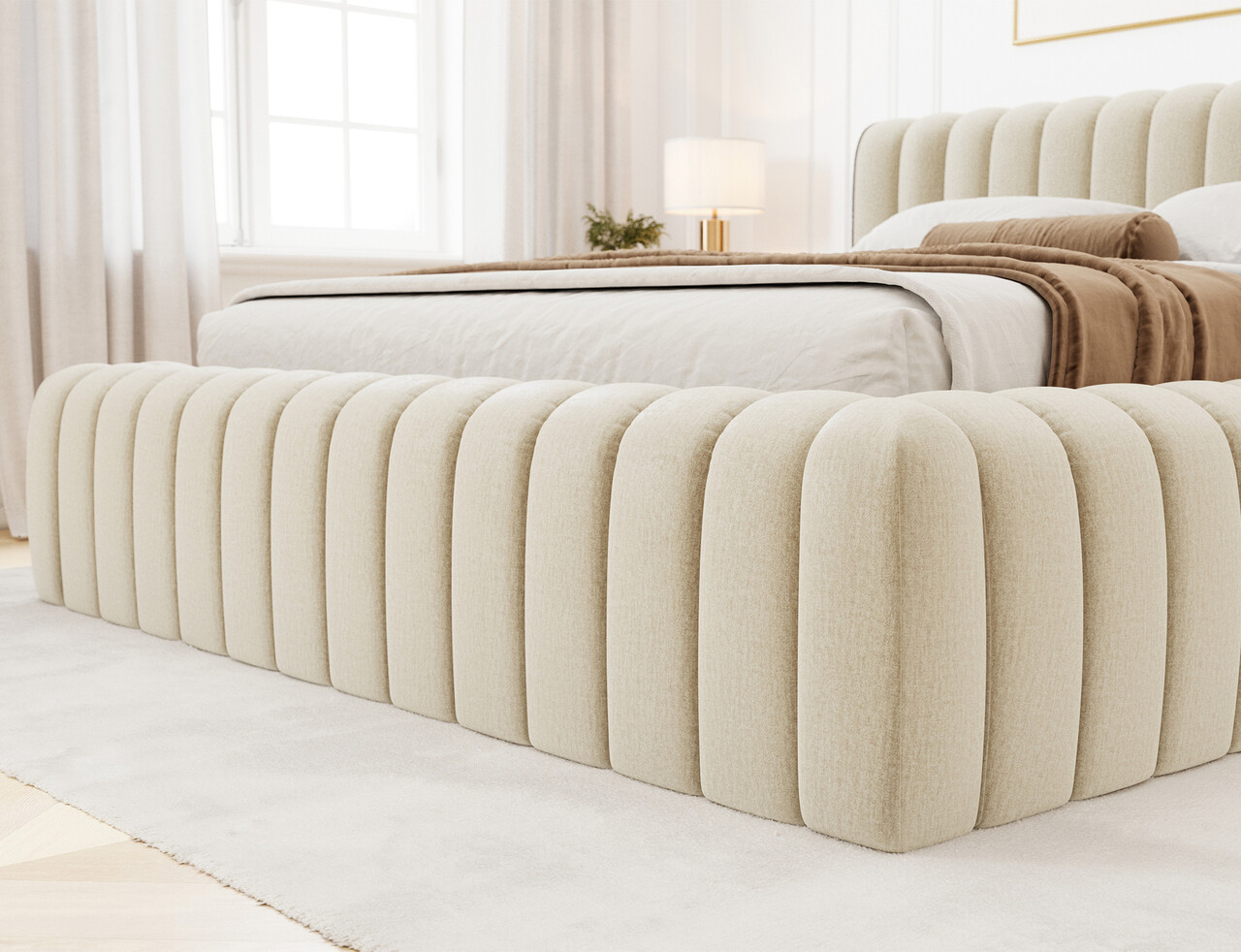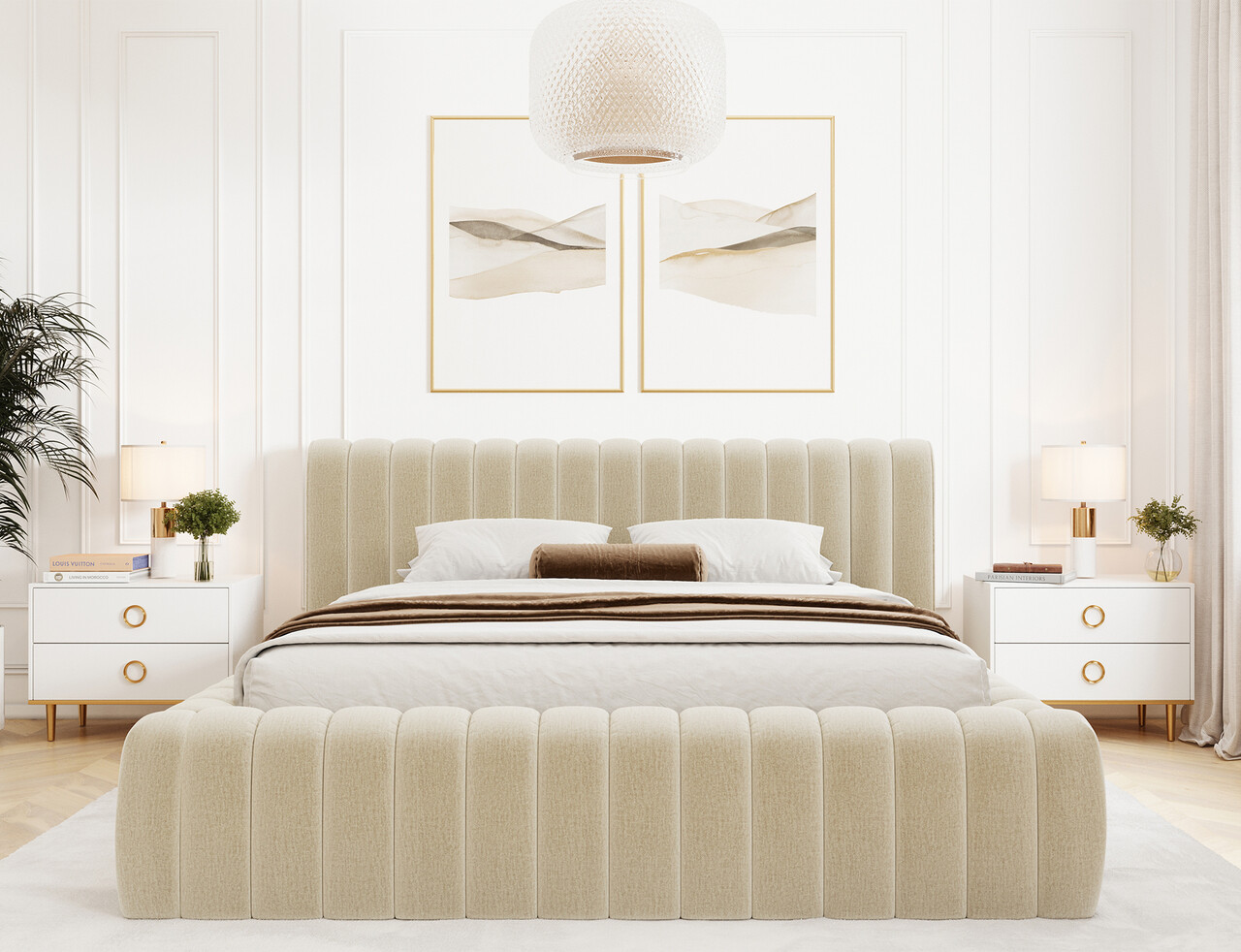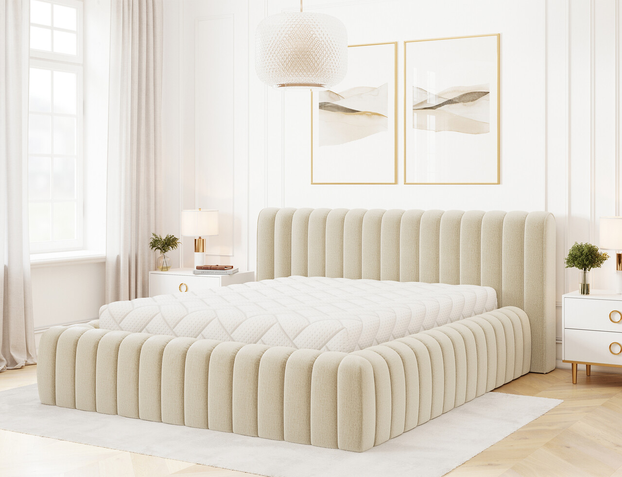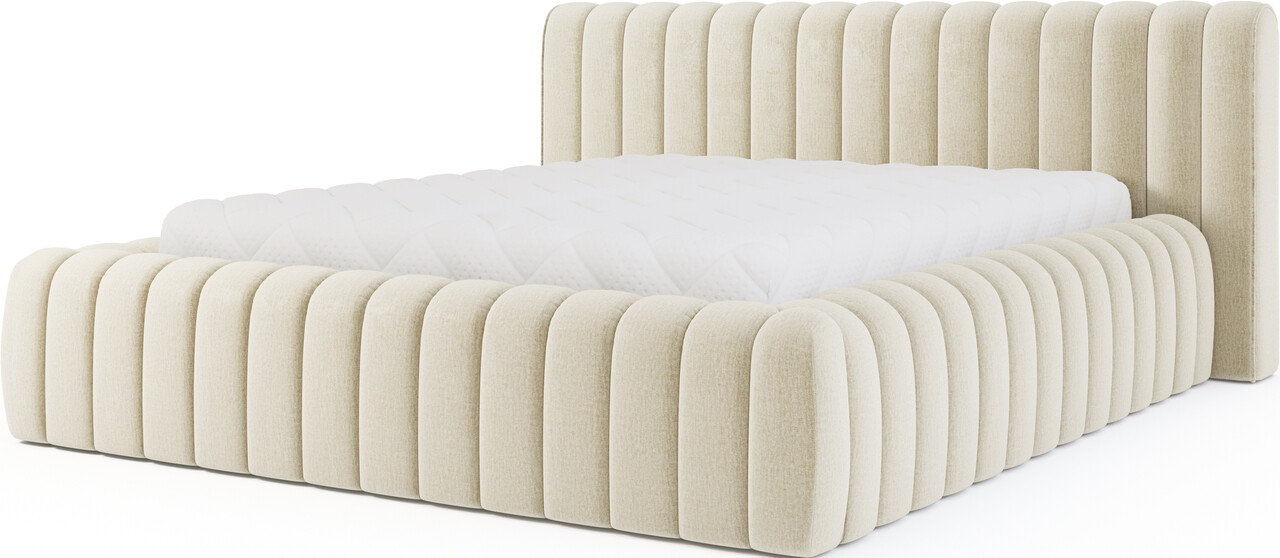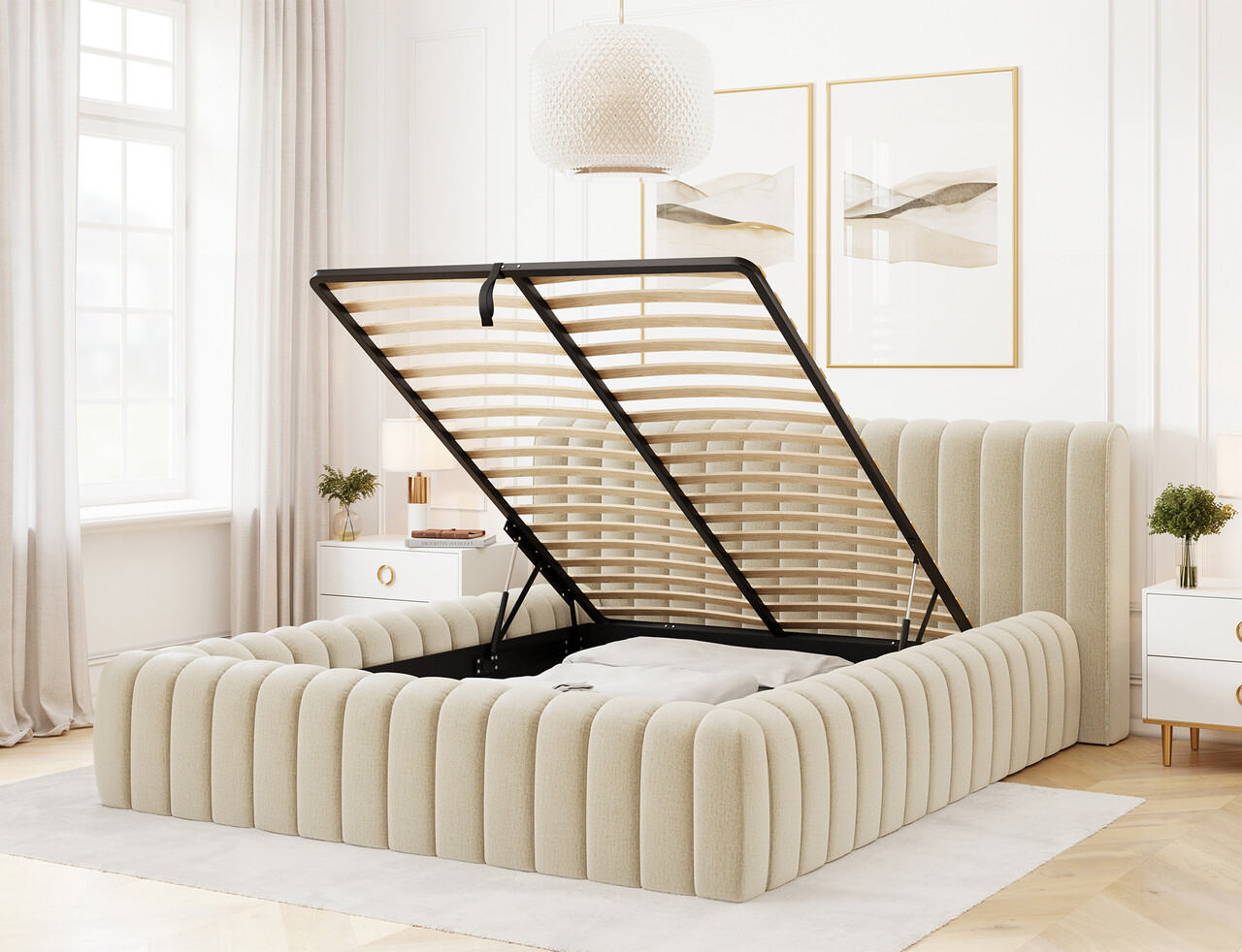 Pat tapitat cu somiera rabatabila si lada depozitare, 180x200 cm, ELTAP, 04MO-1.8, Carilla, metal/poliester, bej