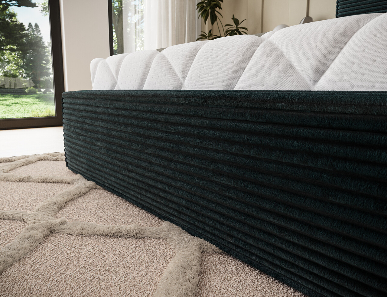 Pat tapitat cu somiera rabatabila si lada depozitare, 180x200 cm, ELTAP, Pesillo, metal/poliester, verde inchis