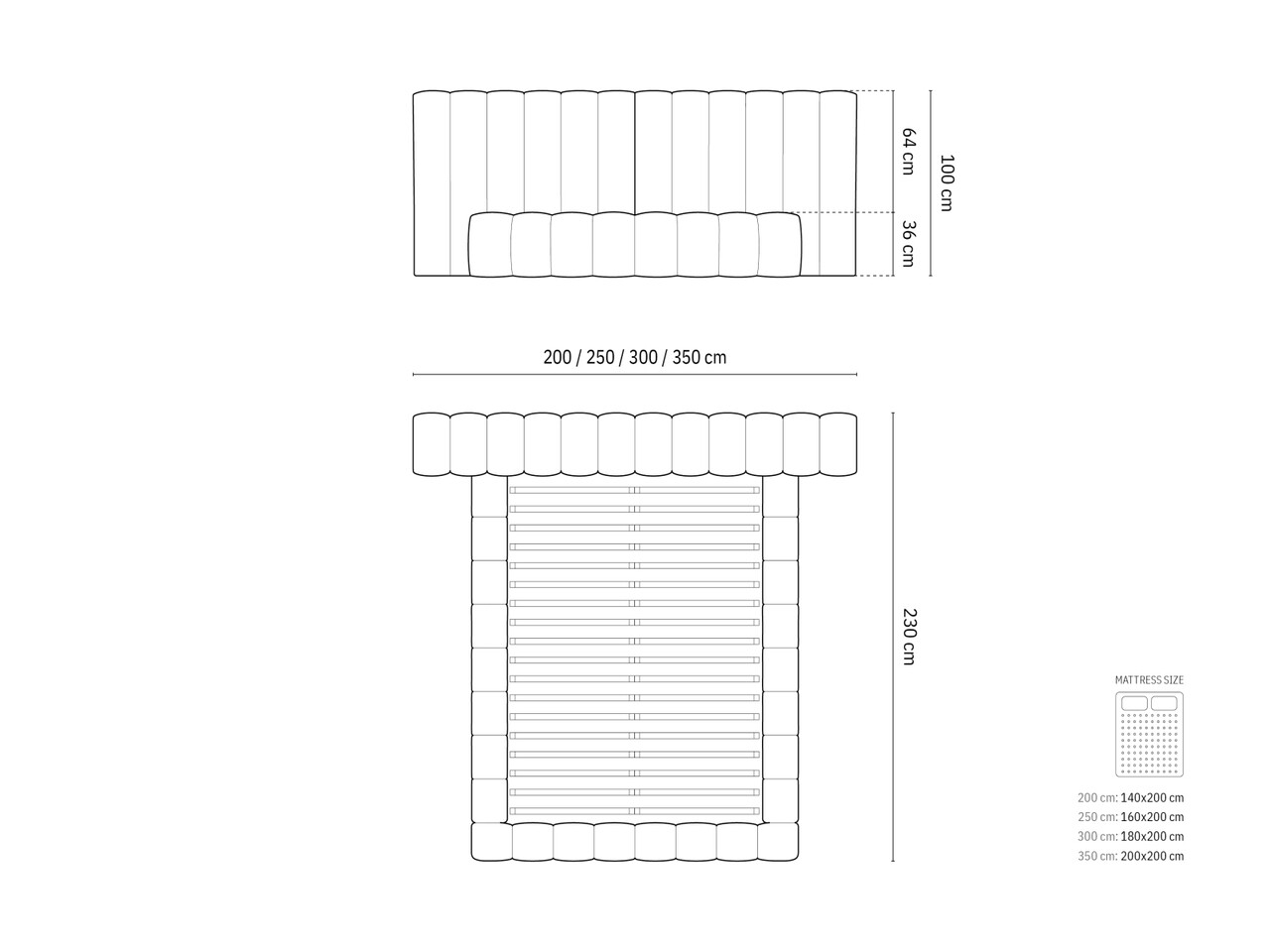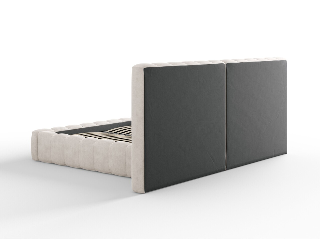 Pat tapitat cu somiera rabatabila si lada depozitare, 200x200 cm, Micadoni Home, Kelp-138, tablie dubla, tesatura structurata chenille, bej