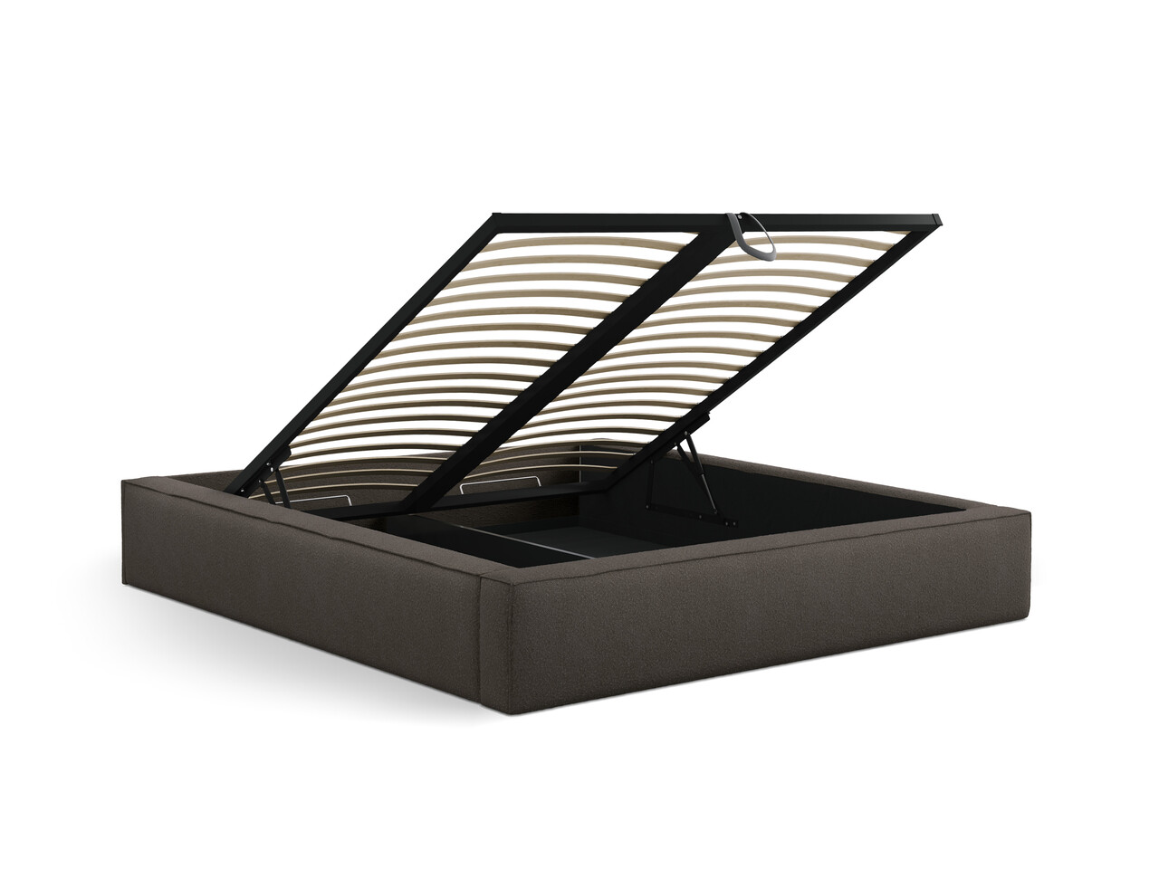 Pat tapitat cu somiera rabatabila si lada depozitare, 200x200 cm, Micadoni Home, Simon-206, tesatura boucle, gri maroniu