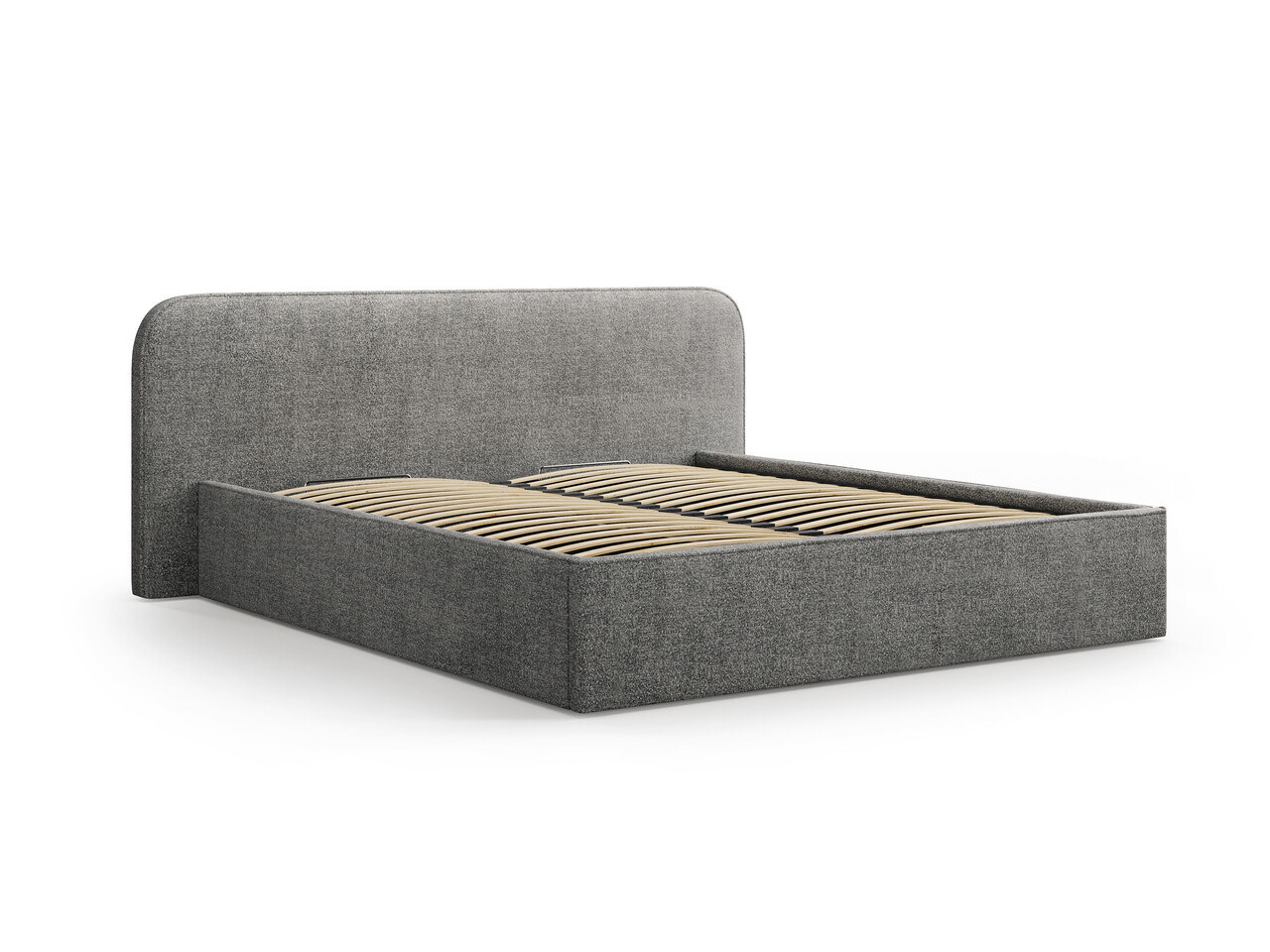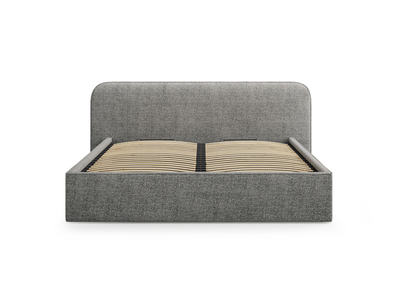 Pat tapitat cu somiera rabatabila si lada depozitare, 200x200 cm, Micadoni Home, Elizabeth-260, tesatura boucle, grafit