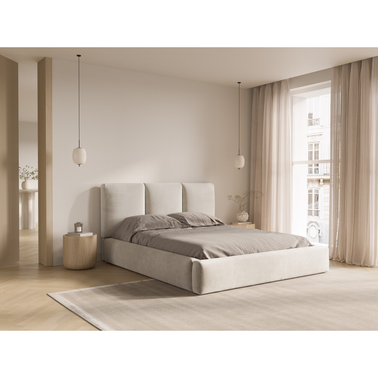 Pat tapitat cu somiera rabatabila si lada depozitare, 200x200 cm, Windsor & Co, Horizon, catifea, bej deschis