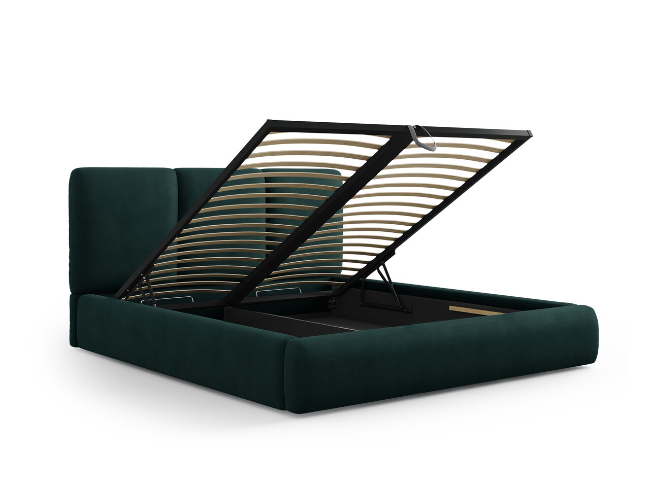 Pat tapitat cu somiera rabatabila si lada depozitare, 200x200 cm, Windsor & Co, Horizon, tesatura chenille, verde bottle