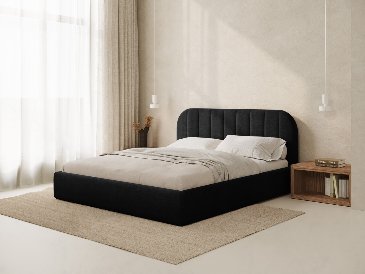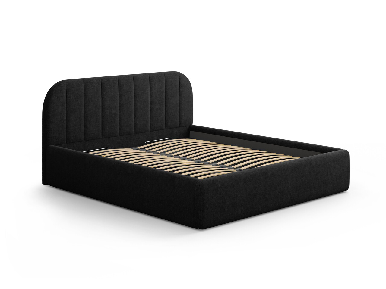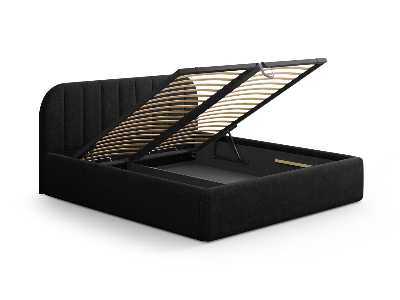 Pat tapitat cu somiera rabatabila si lada depozitare, 200x200 cm, Windsor & Co, Juno, tesatura structurata, negru
