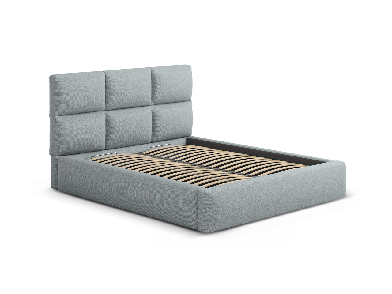 Pat tapitat cu somiera rabatabila si lada depozitare, 200x200 cm, Windsor & Co, Libera, tesatura structurata, gri platina