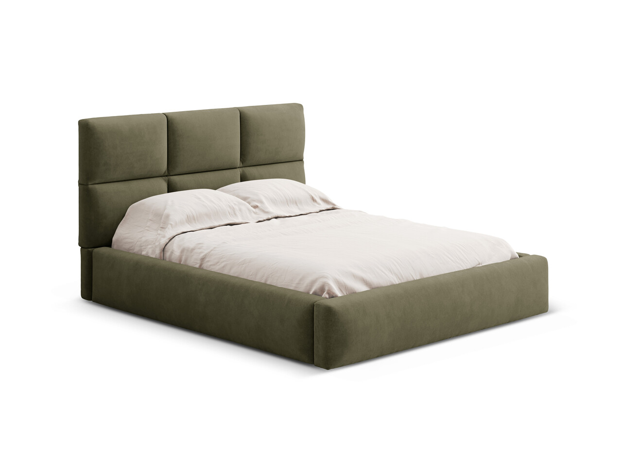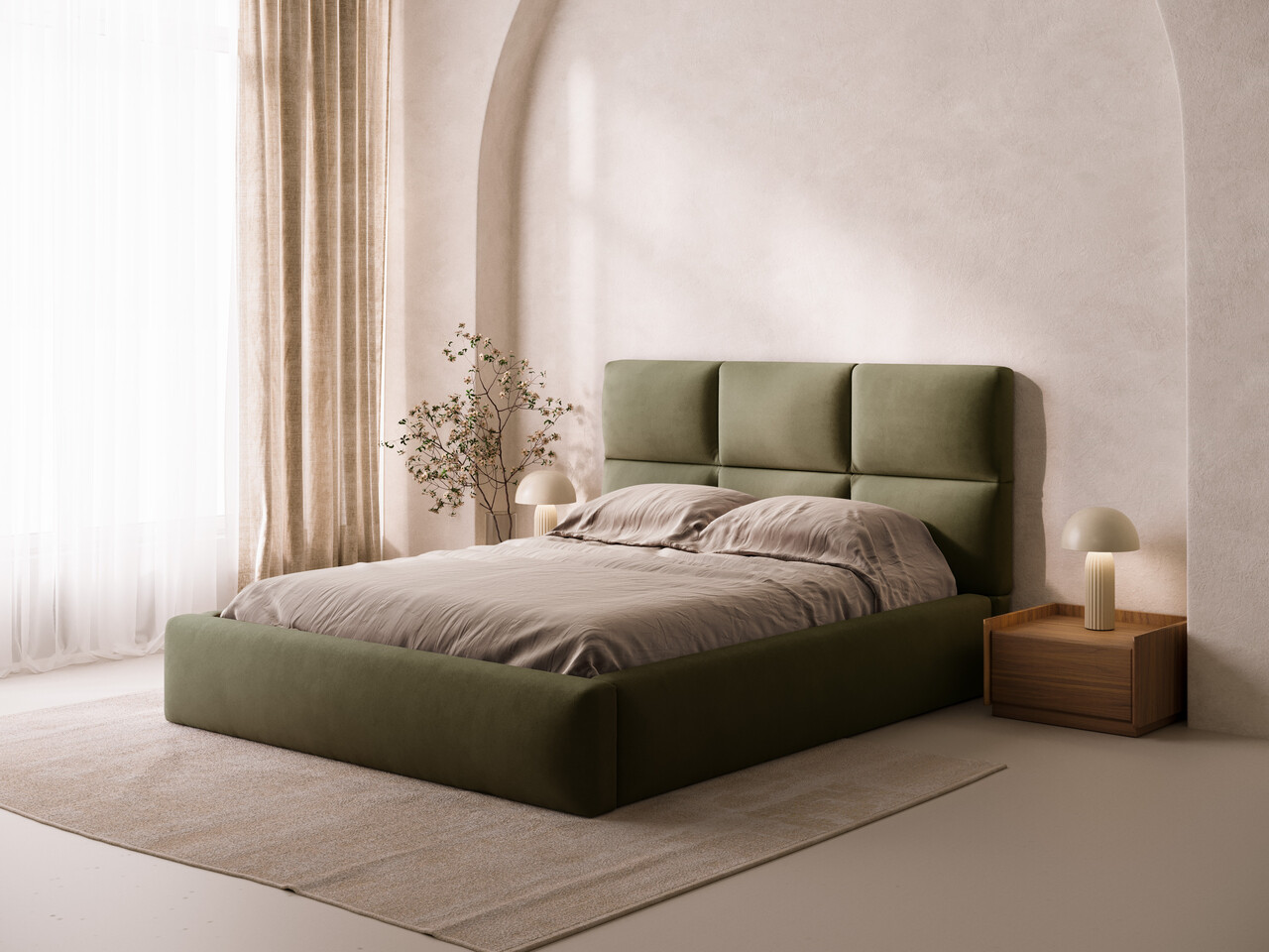 Pat tapitat cu somiera rabatabila si lada depozitare, 200x200 cm, Windsor & Co, Libera, catifea, verde