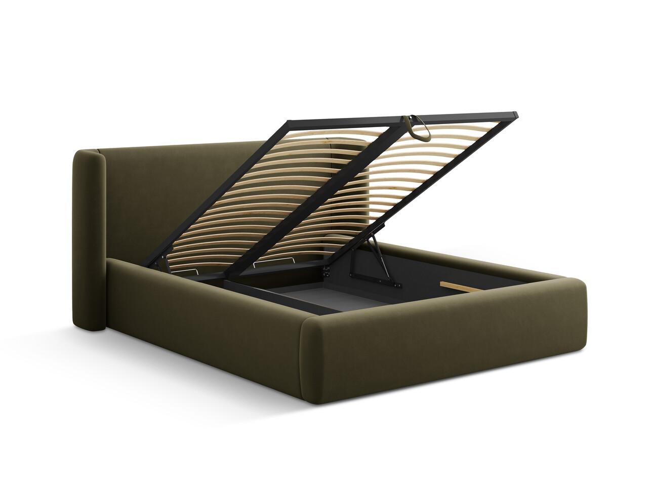 Pat tapitat cu somiera rabatabila si lada depozitare, 200x200 cm, Windsor & Co, Jason, catifea, verde