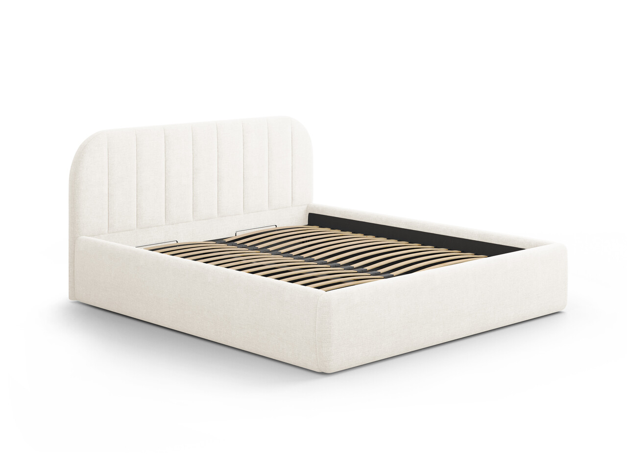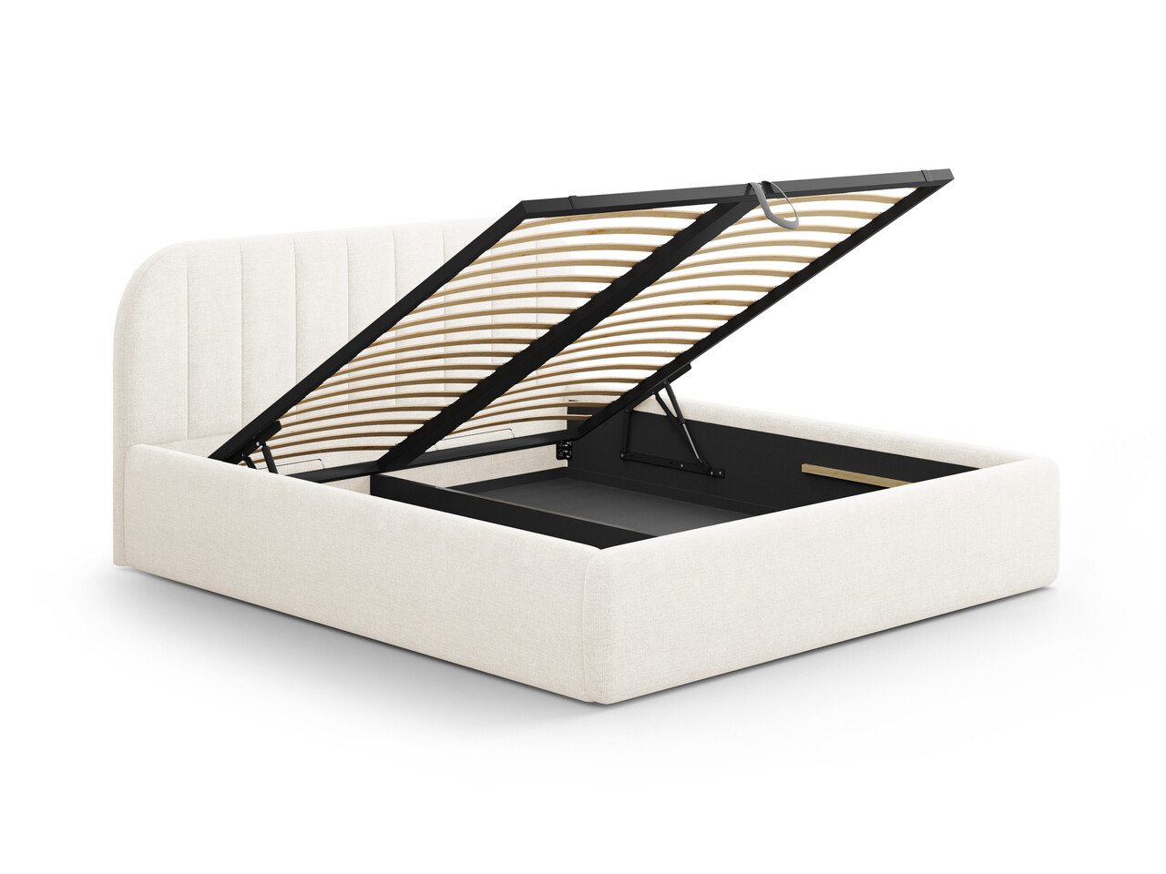 Pat tapitat cu somiera rabatabila si lada depozitare, 200x200 cm, Windsor & Co, Juno, tesatura structurata, ivoriu