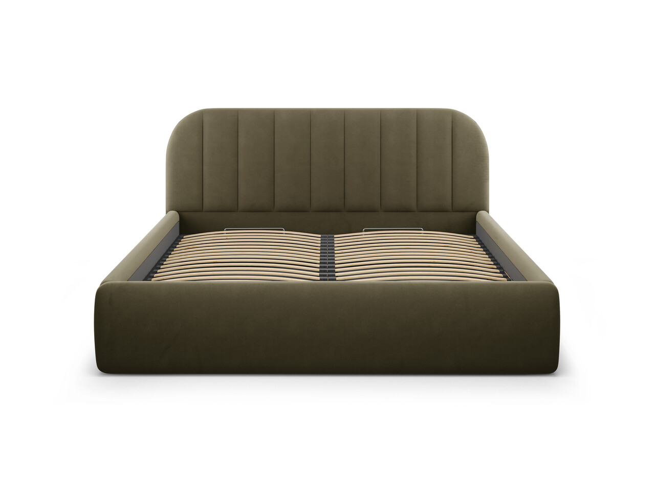 Pat tapitat cu somiera rabatabila si lada depozitare, 200x200 cm, Windsor & Co, Juno, catifea, verde