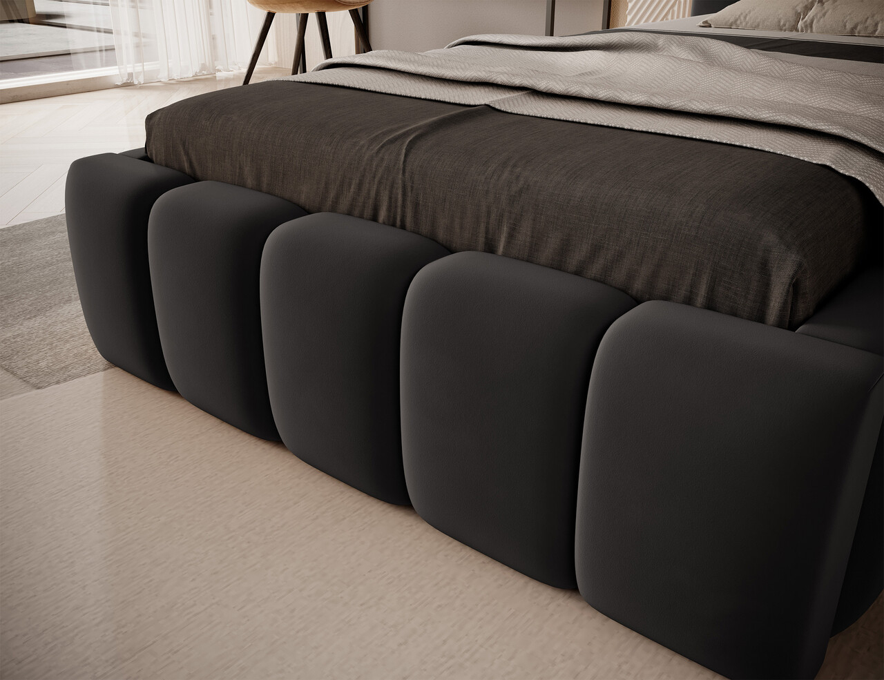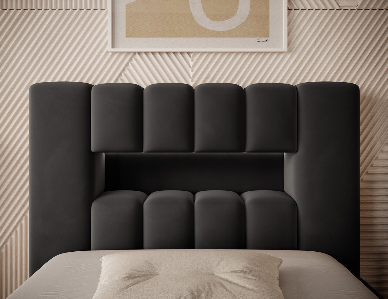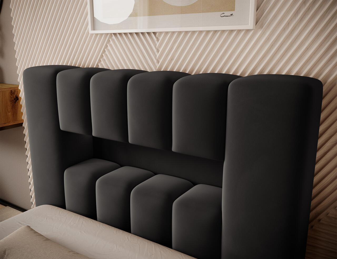 Calitatea executiei este remarcabila, datorita tabliei inalte si a lateralelor realizate din spuma, care ofera un plus de confort. Eleganta sa este accentuata de matlasarea extinsa, ce adauga un aer sofisticat intregului ansamblu. Mai mult, varietatea larga de culori disponibile permite integrarea perfecta a patului in orice decor.