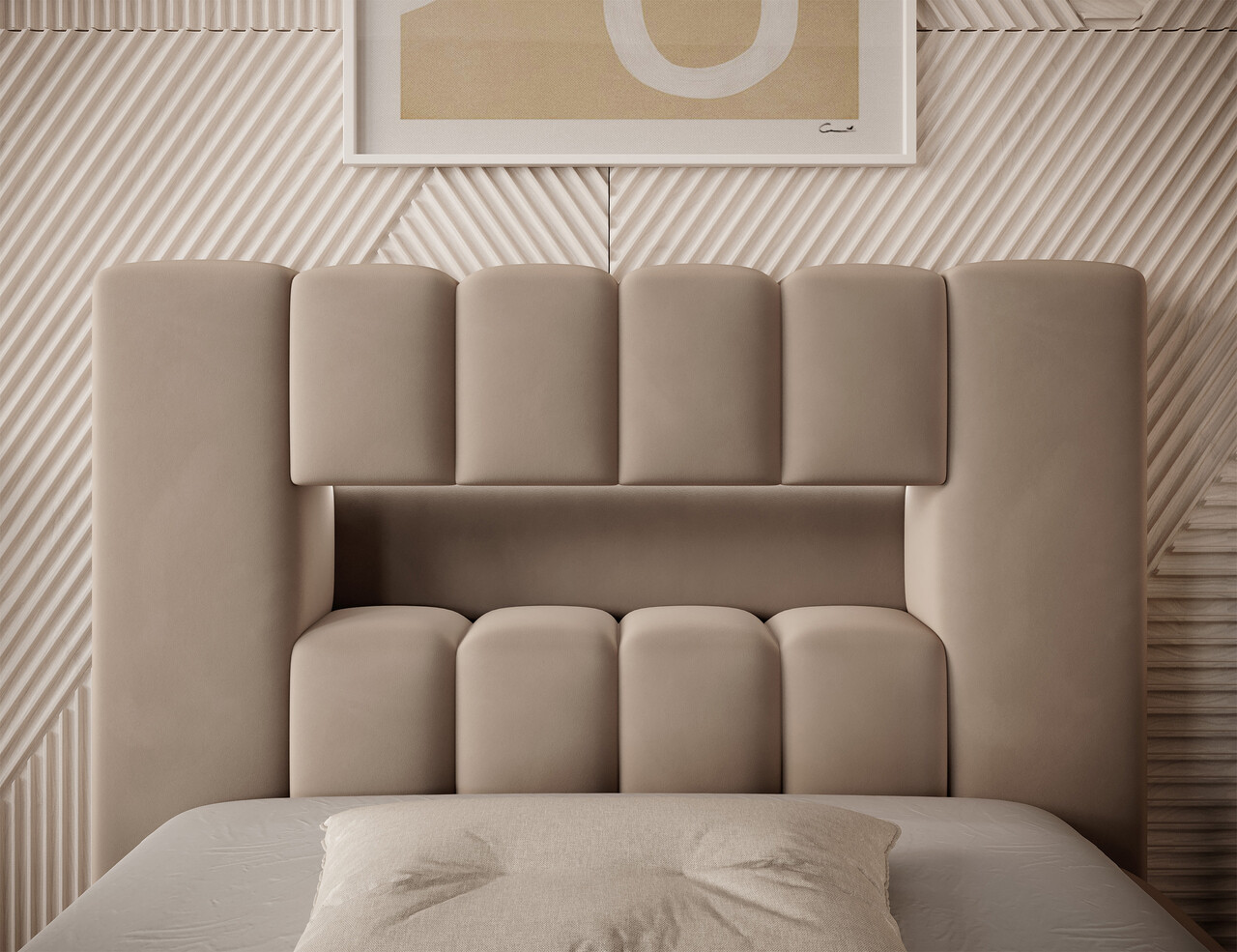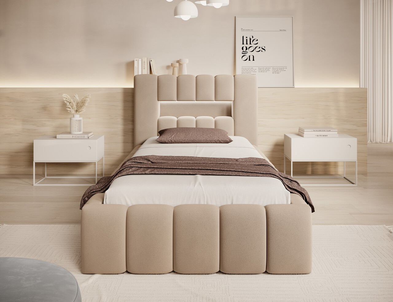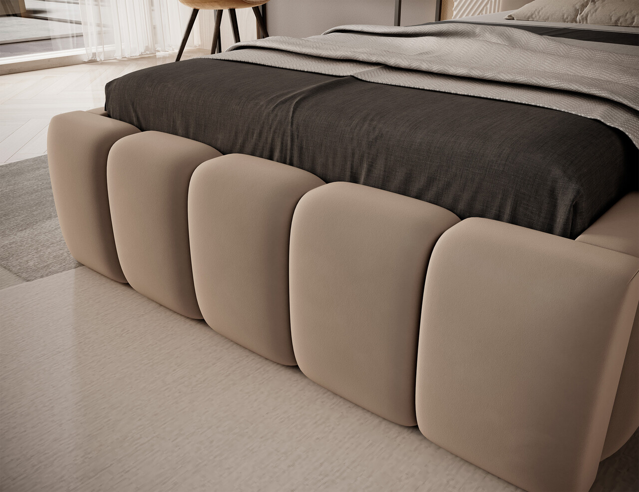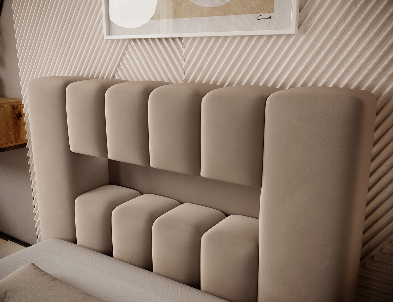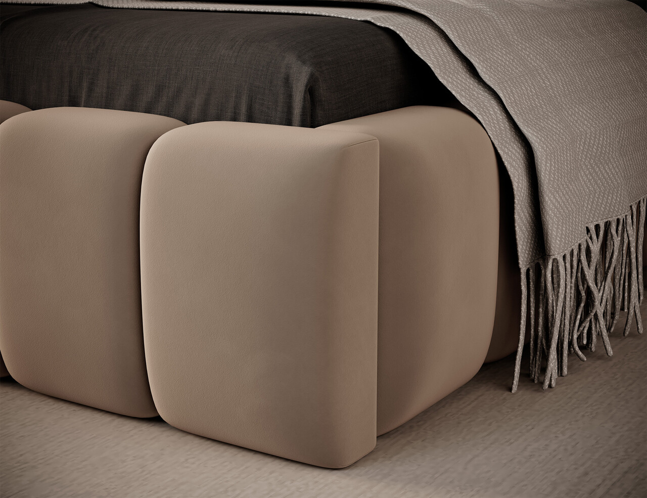 Calitatea executiei este remarcabila, datorita tabliei inalte si a lateralelor realizate din spuma, care ofera un plus de confort. Eleganta sa este accentuata de matlasarea extinsa, ce adauga un aer sofisticat intregului ansamblu. Mai mult, varietatea larga de culori disponibile permite integrarea perfecta a patului in orice decor.