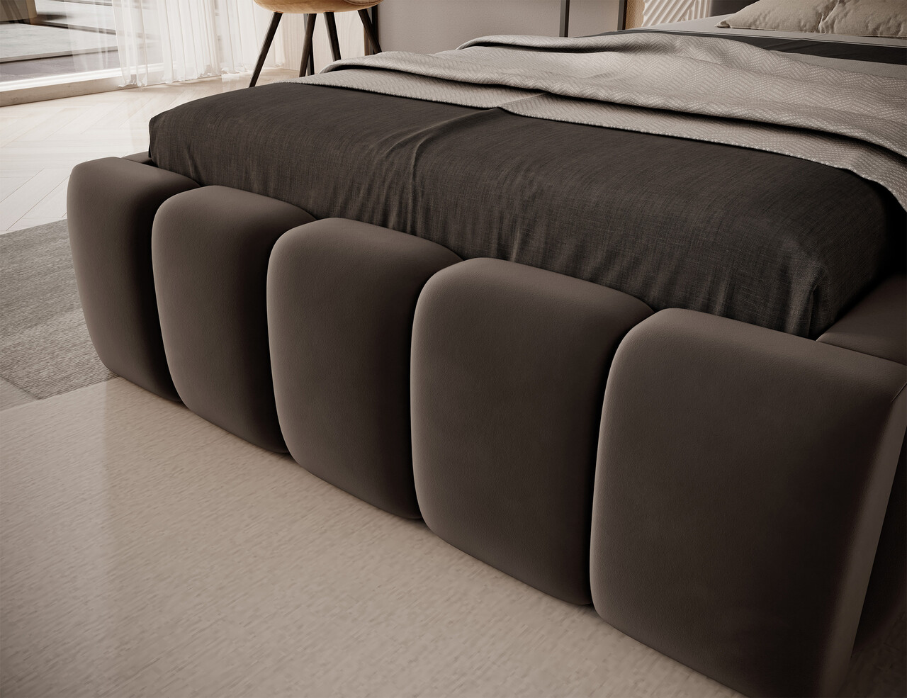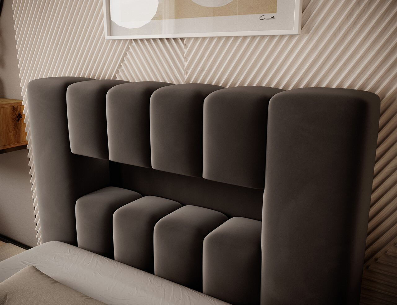 Calitatea executiei este remarcabila, datorita tabliei inalte si a lateralelor realizate din spuma, care ofera un plus de confort. Eleganta sa este accentuata de matlasarea extinsa, ce adauga un aer sofisticat intregului ansamblu. Mai mult, varietatea larga de culori disponibile permite integrarea perfecta a patului in orice decor.