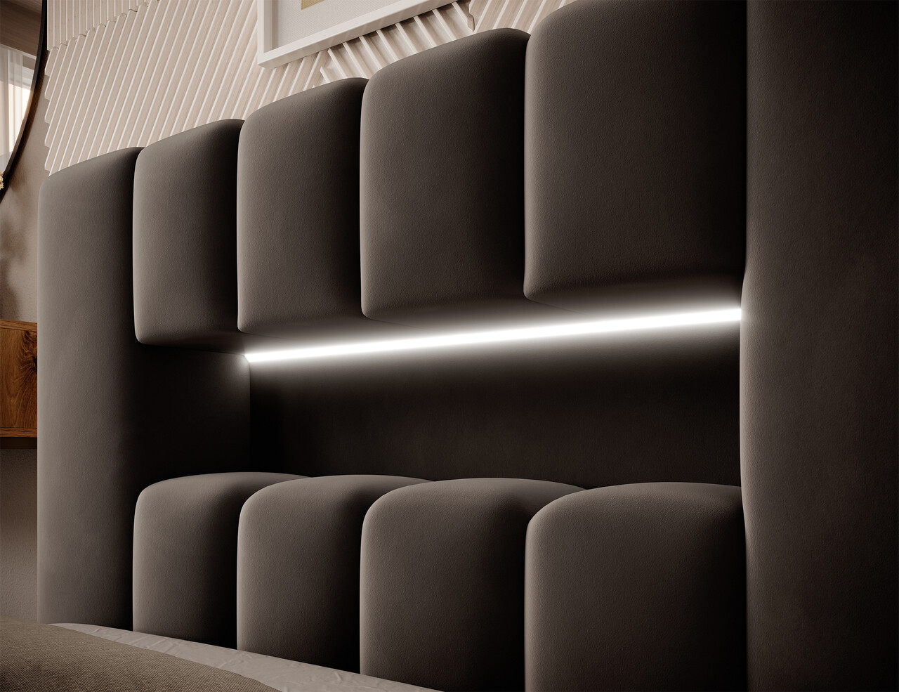 Un detaliu exclusivist al patului Lamica este tablia cu iluminare LED care creeaza o atmosfera relaxanta si placuta. Aceasta combinatie intre modernitate si rafinament face din patul Lamica alegerea ideala pentru cei care isi doresc un dormitor elegant si functional.