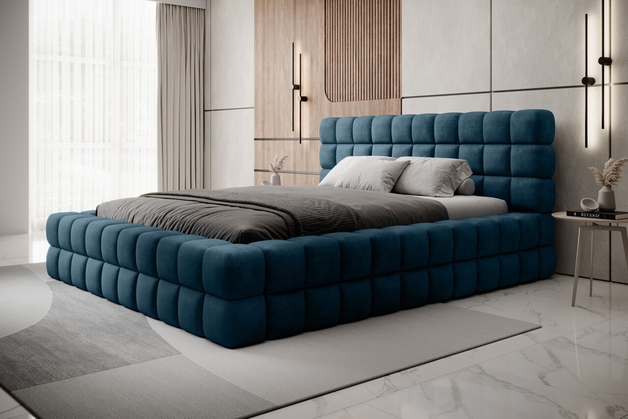 Pat tapitat cu somiera si lada depozitare, 140x200 cm, ELTAP, BE-DIZ-MET-40AMO, Dizzle, metal/poliester, albastru inchis