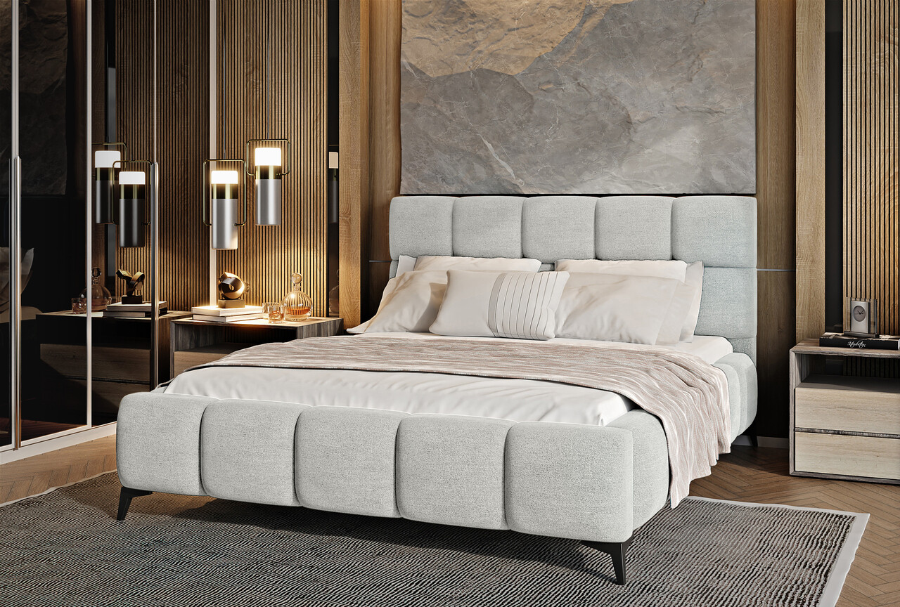 Tapiteria sofisticata a patului Mist adauga caracter si stil, integrandu-se perfect intr-un decor contemporan. Mobilierul este disponibil in trei dimensiuni ale suprafetei de dormit – 140x200 cm, 160x200 cm si 180x200 cm – permitandu-va sa alegeti varianta ideala pentru spatiul dumneavoastra.