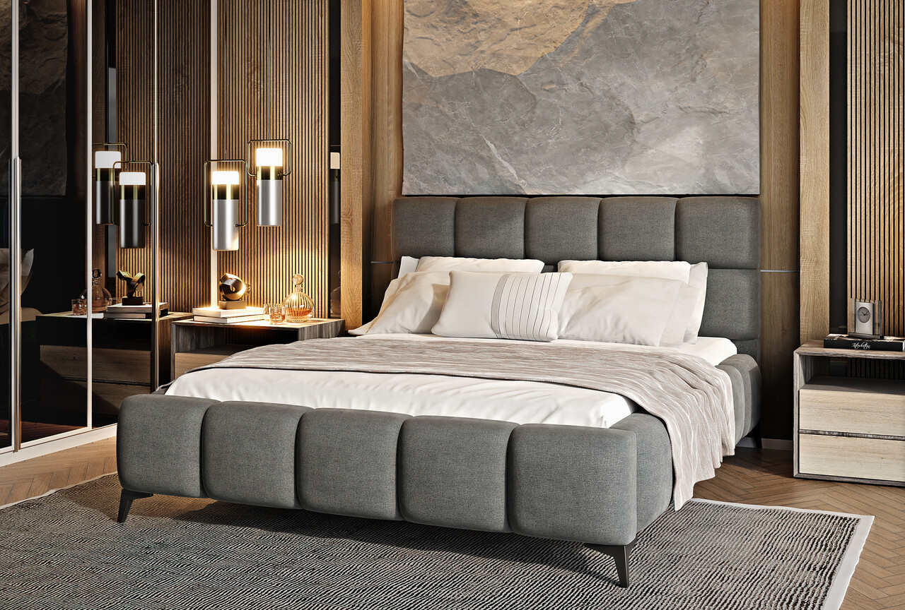 Tapiteria sofisticata a patului Mist adauga caracter si stil, integrandu-se perfect intr-un decor contemporan. Mobilierul este disponibil in trei dimensiuni ale suprafetei de dormit – 140x200 cm, 160x200 cm si 180x200 cm – permitandu-va sa alegeti varianta ideala pentru spatiul dumneavoastra.