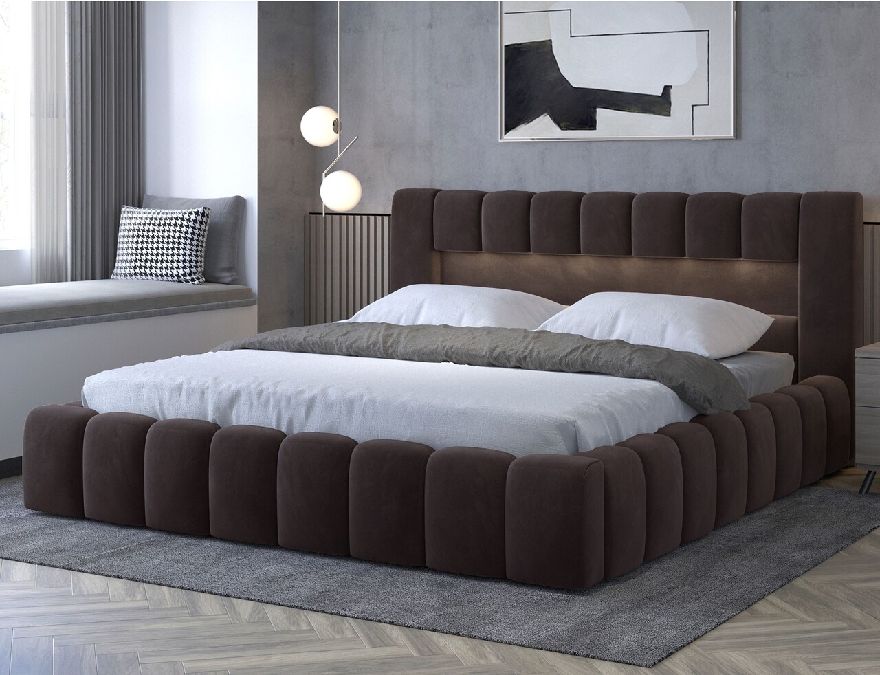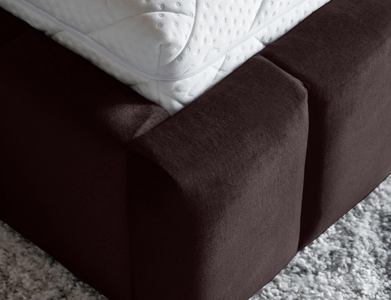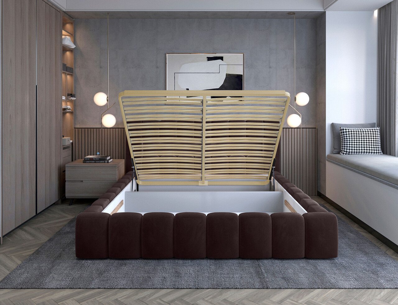 Pat tapitat cu somiera si lada depozitare, 140x200 cm, ELTAP, Lamica, lemn/poliester, maro inchis