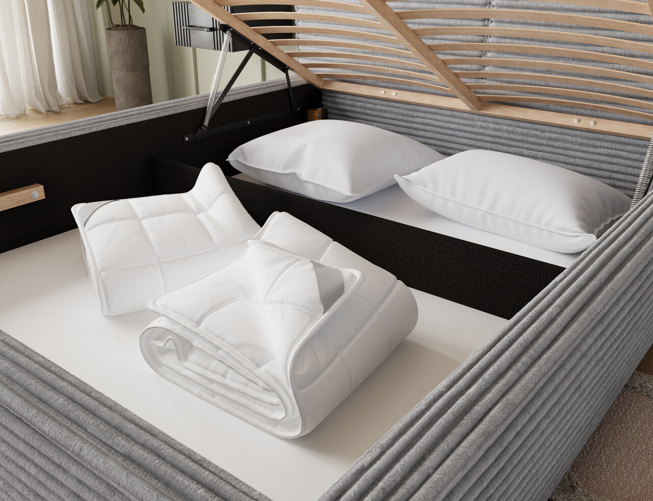 Pat tapitat cu somiera si lada depozitare, 140x200 cm, ELTAP, Pesillo, lemn/poliester, gri