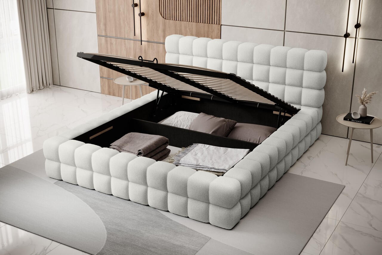 Pat tapitat cu somiera si lada depozitare, 160x200 cm, ELTAP, BE-DIZ-MET-01ROY, Dizzle, metal/poliester, alb