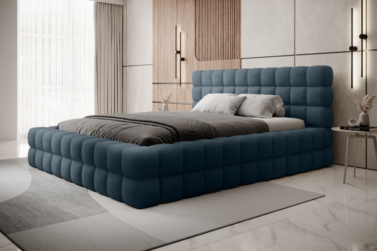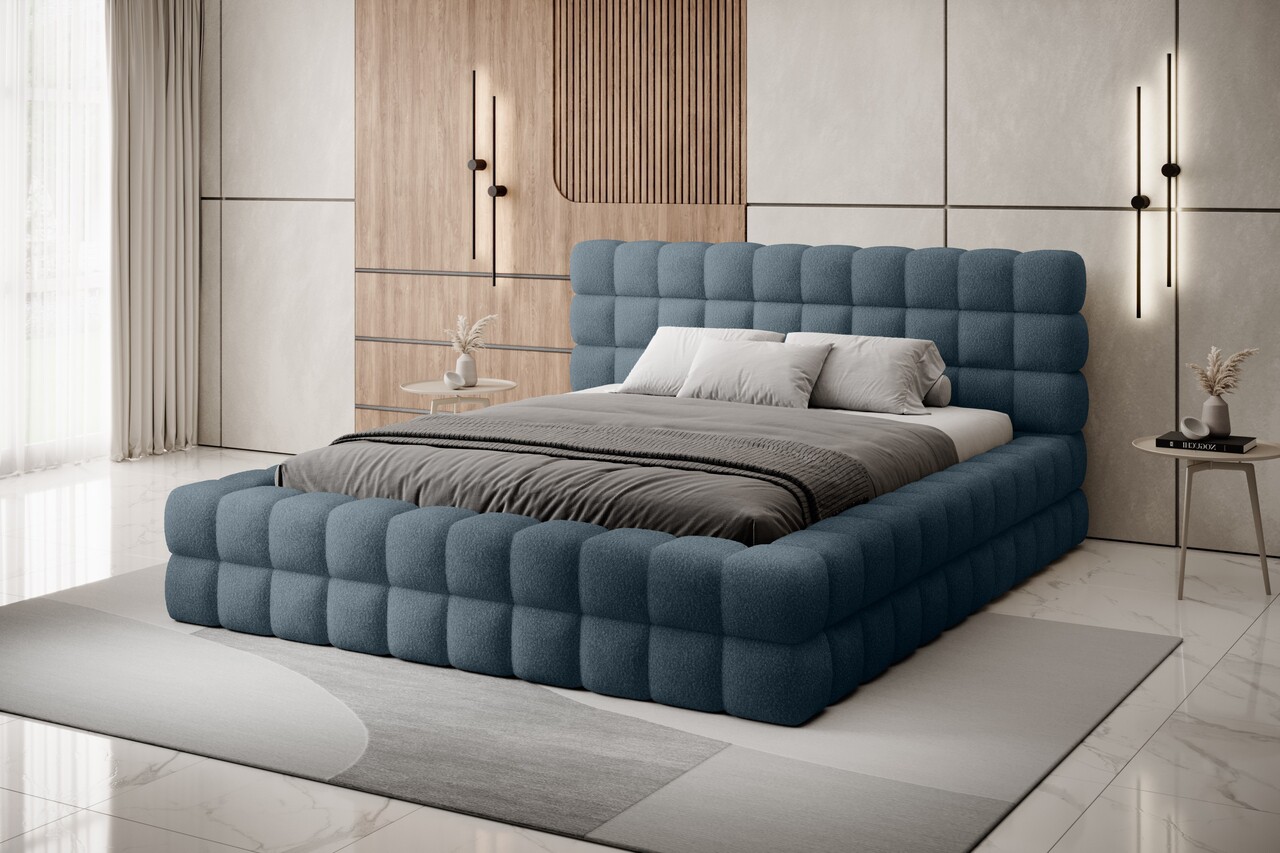Pat tapitat cu somiera si lada depozitare, 160x200 cm, ELTAP, BE-DIZ-MET-40JAF, Dizzle, metal/poliester, albastru