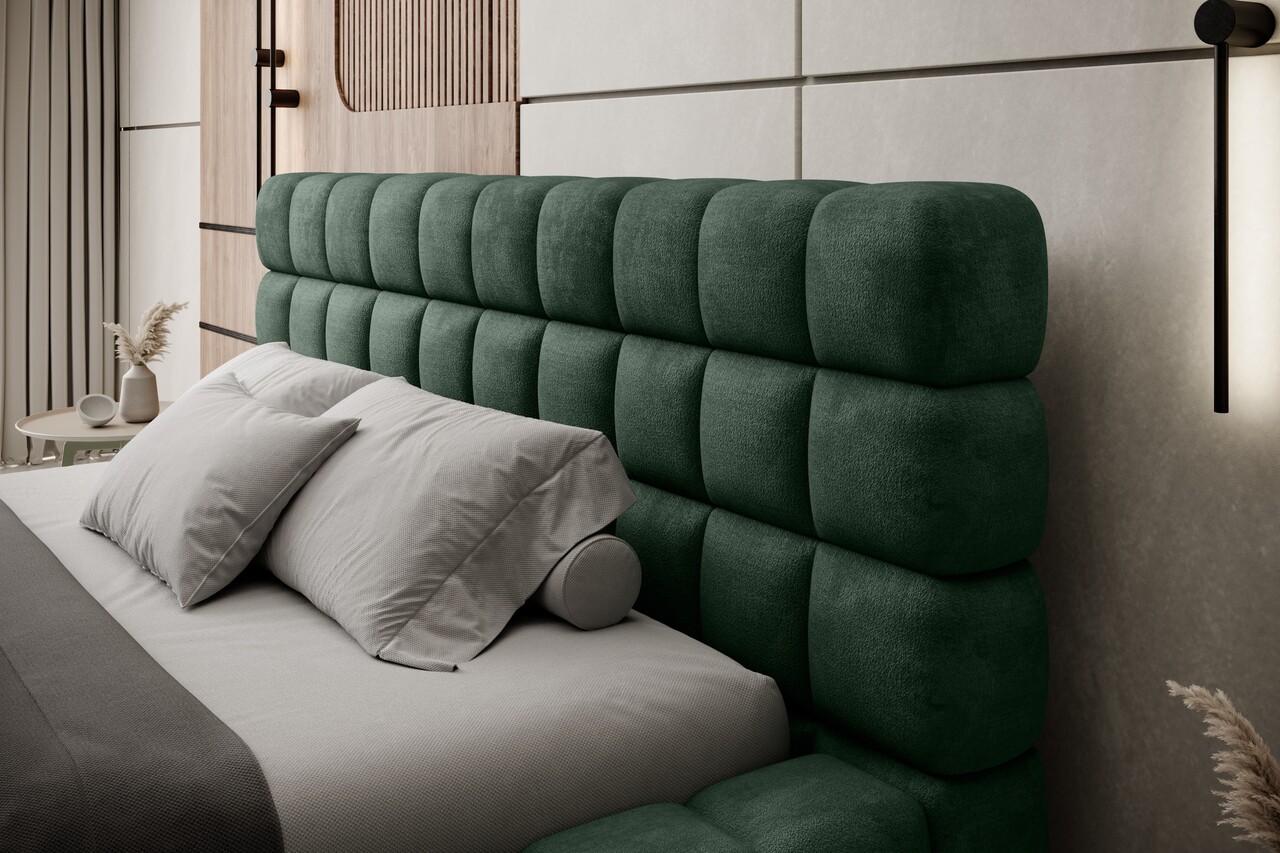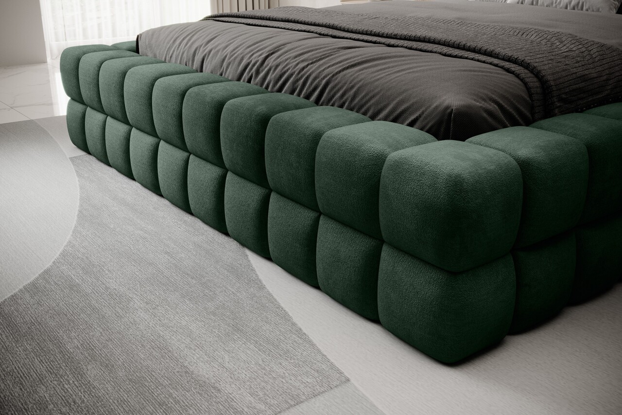Pat tapitat cu somiera si lada depozitare, 160x200 cm, ELTAP, BE-DIZ-MET-35AMO, Dizzle, metal/poliester, verde