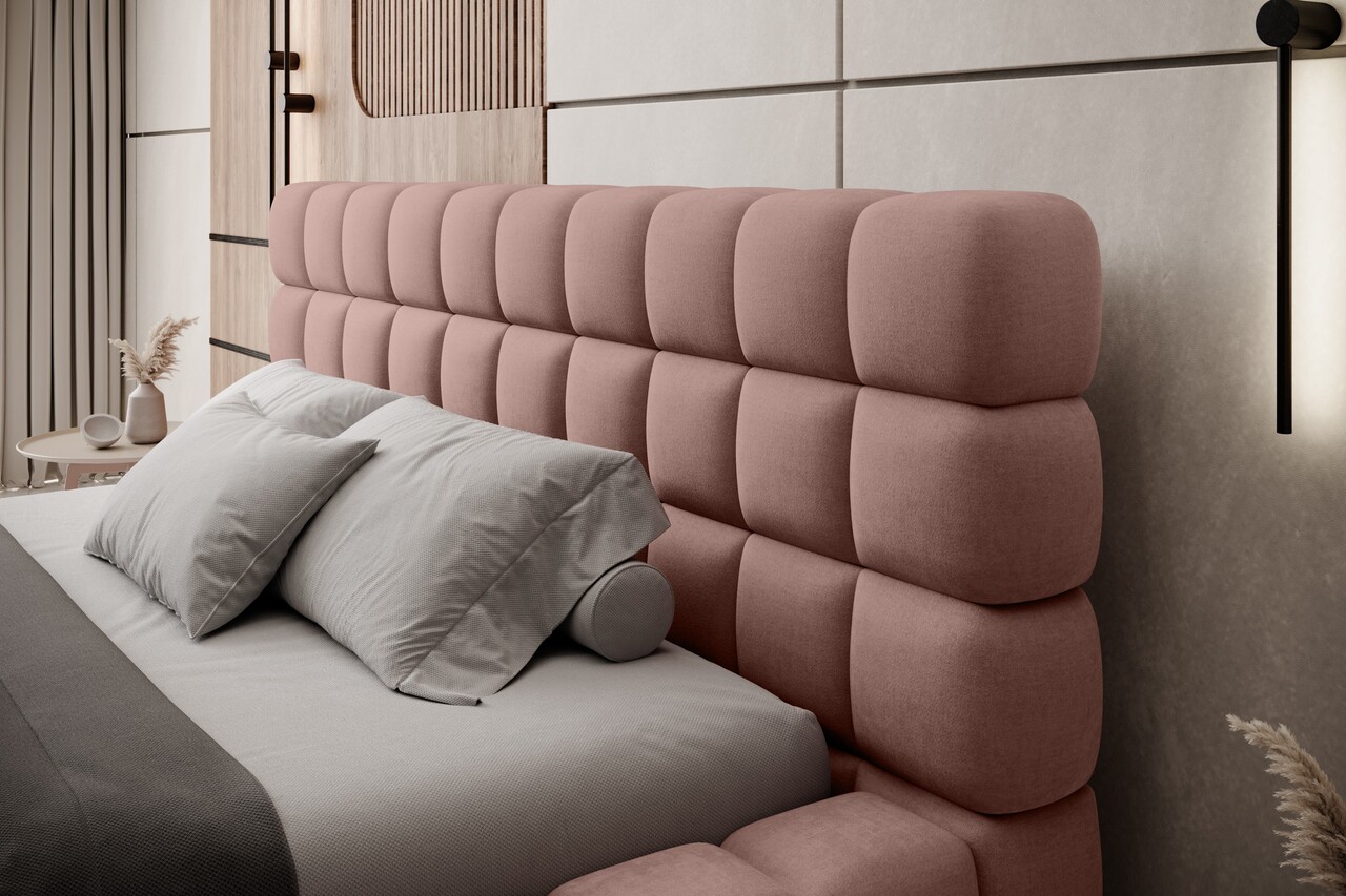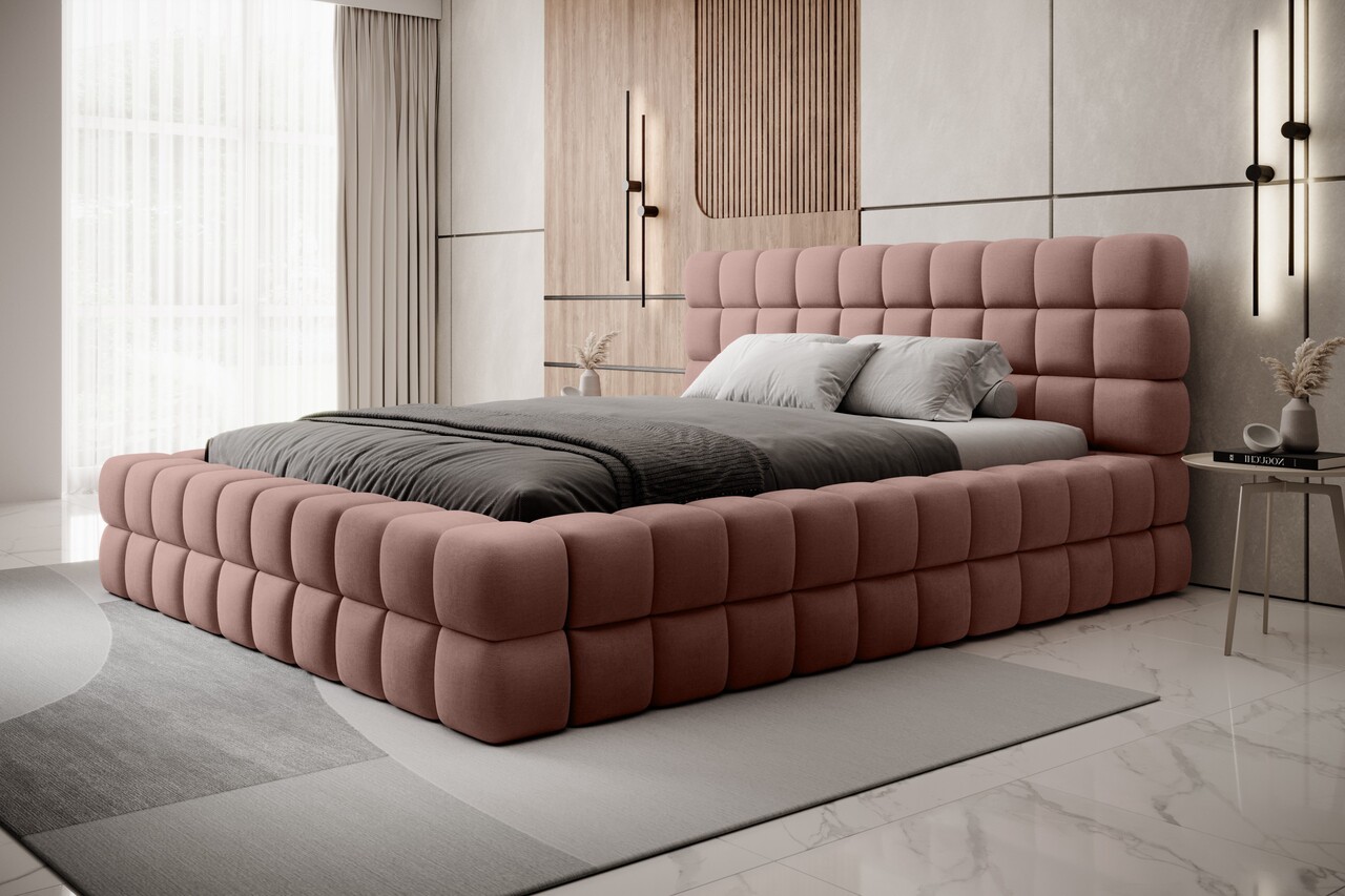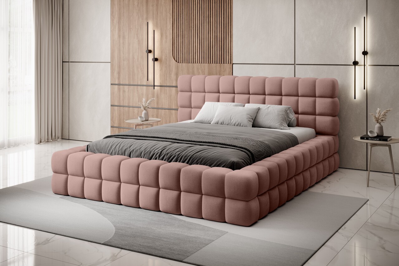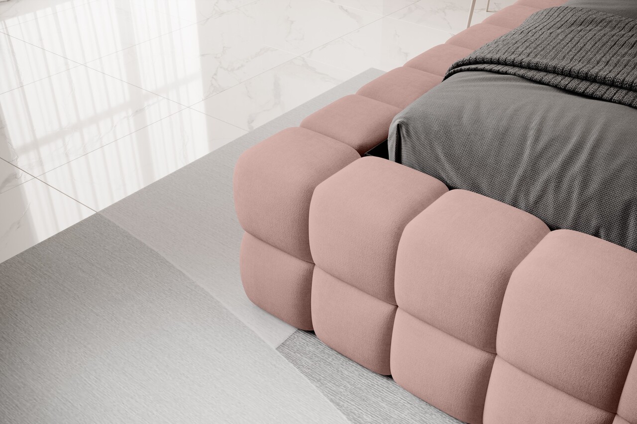 Pat tapitat cu somiera si lada depozitare, 160x200 cm, ELTAP, BE-DIZ-MET-24TOU, Dizzle, metal/poliester, roz inchis