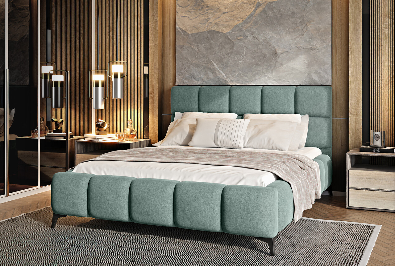 Tapiteria sofisticata a patului Mist adauga caracter si stil, integrandu-se perfect intr-un decor contemporan. Mobilierul este disponibil in trei dimensiuni ale suprafetei de dormit – 140x200 cm, 160x200 cm si 180x200 cm – permitandu-va sa alegeti varianta ideala pentru spatiul dumneavoastra.