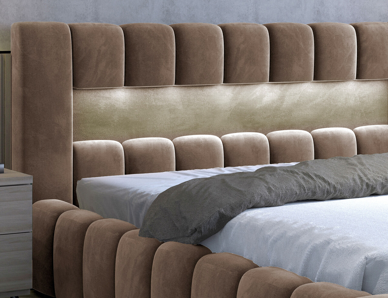 Un detaliu exclusivist este tablia cu iluminare LED care creeaza o atmosfera relaxanta si rafinata, transformand fiecare moment de odihna intr-o experienta deosebita. Imbinand modernitatea cu un finisaj elegant, patul Lamica reprezinta alegerea perfecta pentru cei care apreciaza atat stilul, cat si confortul.