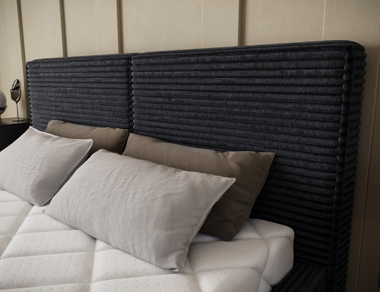 Pat tapitat cu somiera si lada depozitare, 160x200 cm, ELTAP, Pesillo, lemn/poliester, negru