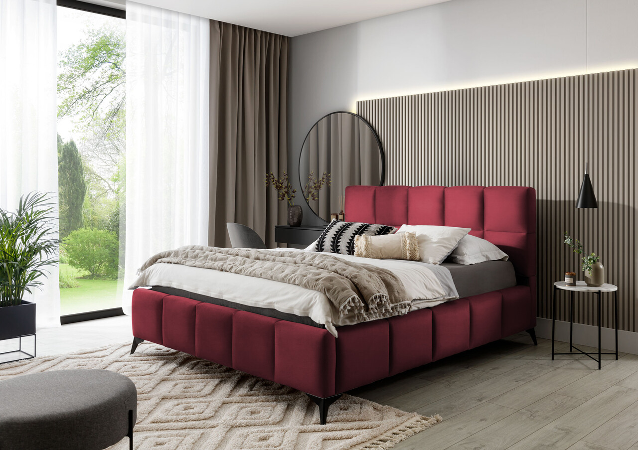 Pat tapitat cu somiera si lada depozitare, 180x200 cm, ELTAP, BE-MIS-25LO, Mist, lemn/poliester, rosu deschis