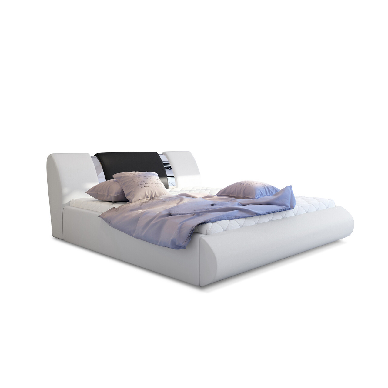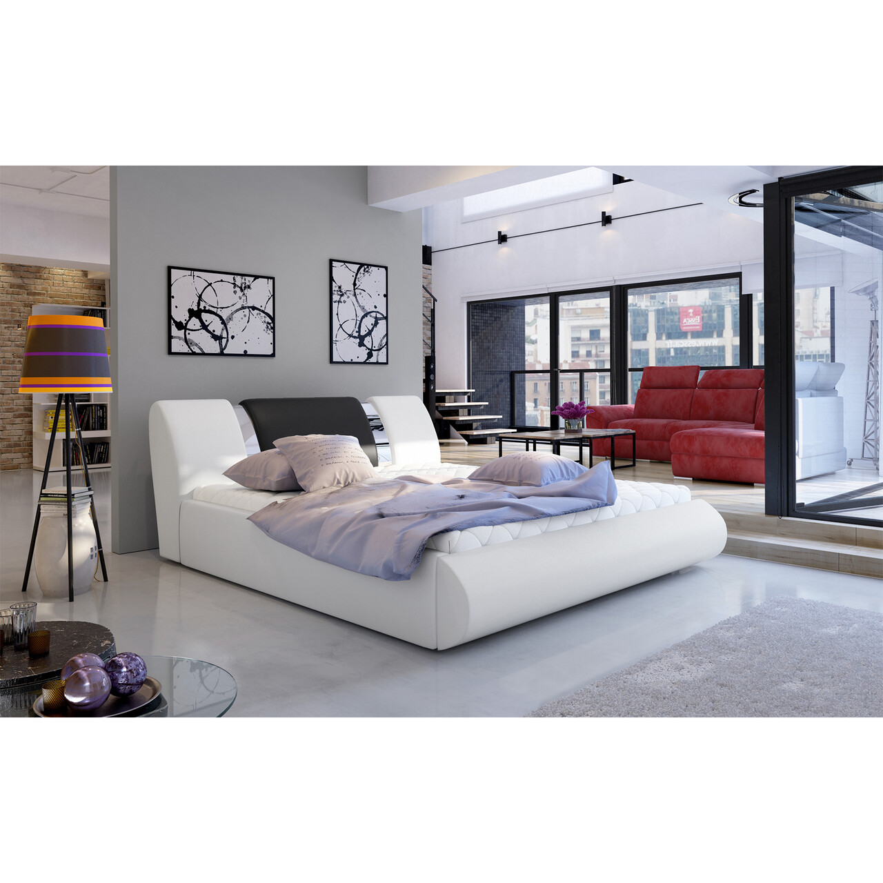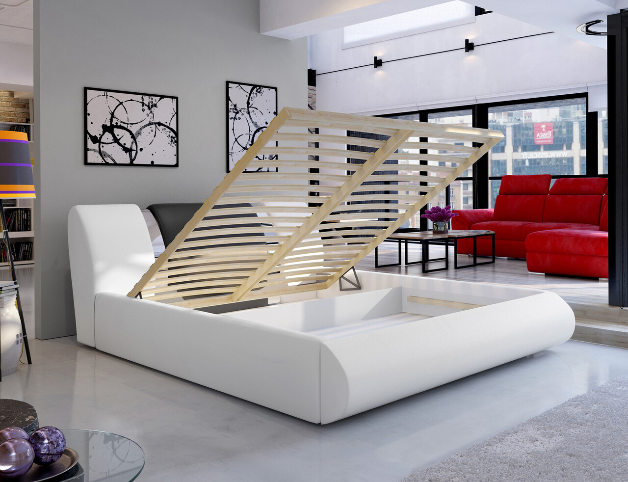 Pat tapitat cu somiera si lada depozitare, 180x200 cm, ELTAP, Flavio, lemn/poliester, alb/negru