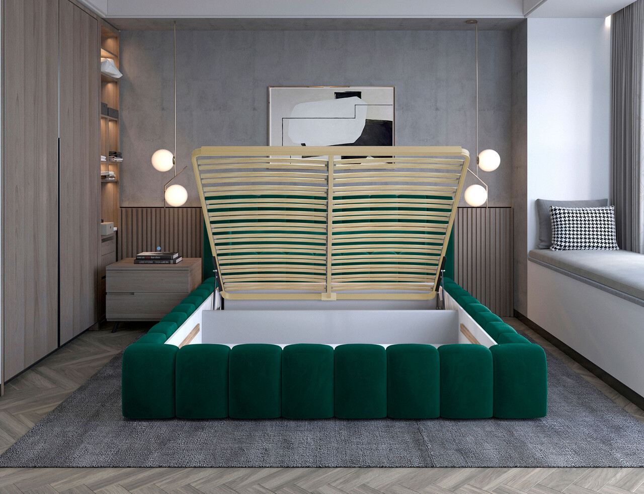 Pat tapitat cu somiera si lada depozitare, 180x200 cm, ELTAP, Lamica, lemn/poliester, verde