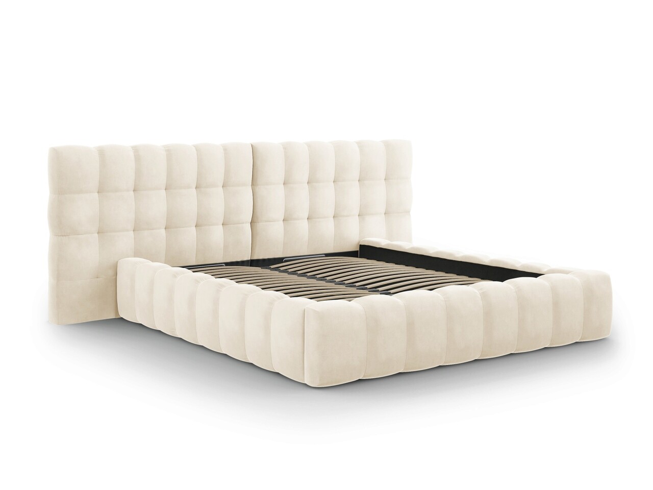 Pat tapitat cu tablie dubla si lada depozitare, Mamaia, Micadoni Home, BL, 180x200 cm, catifea, bej deschis