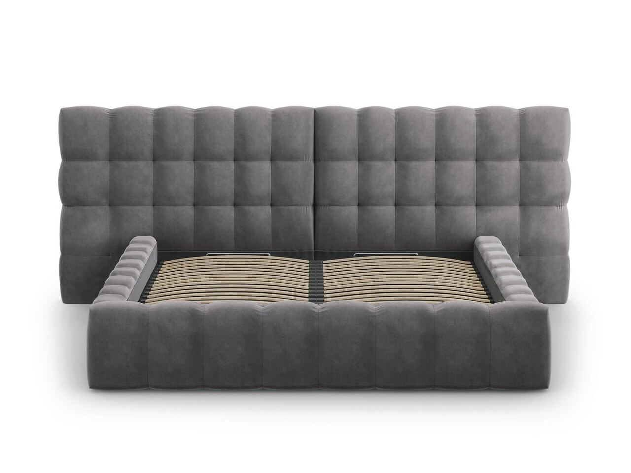 Pat tapitat cu tablie dubla si lada depozitare, Mamaia, Micadoni Home, BL, 180x200 cm, catifea, gri