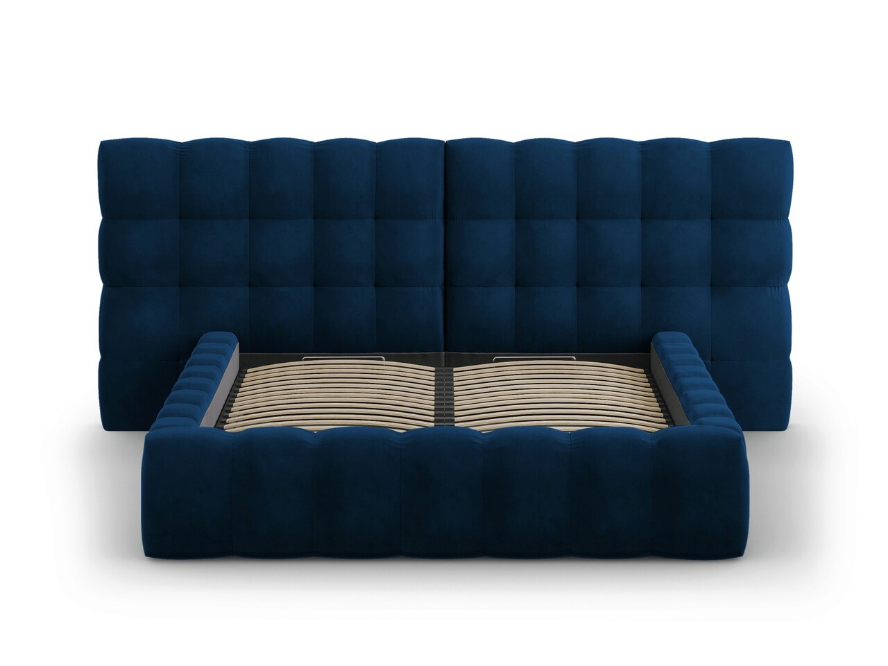 Pat tapitat cu tablie dubla si lada depozitare, Mamaia, Micadoni Home, BL, 140x200 cm, catifea, albastru regal