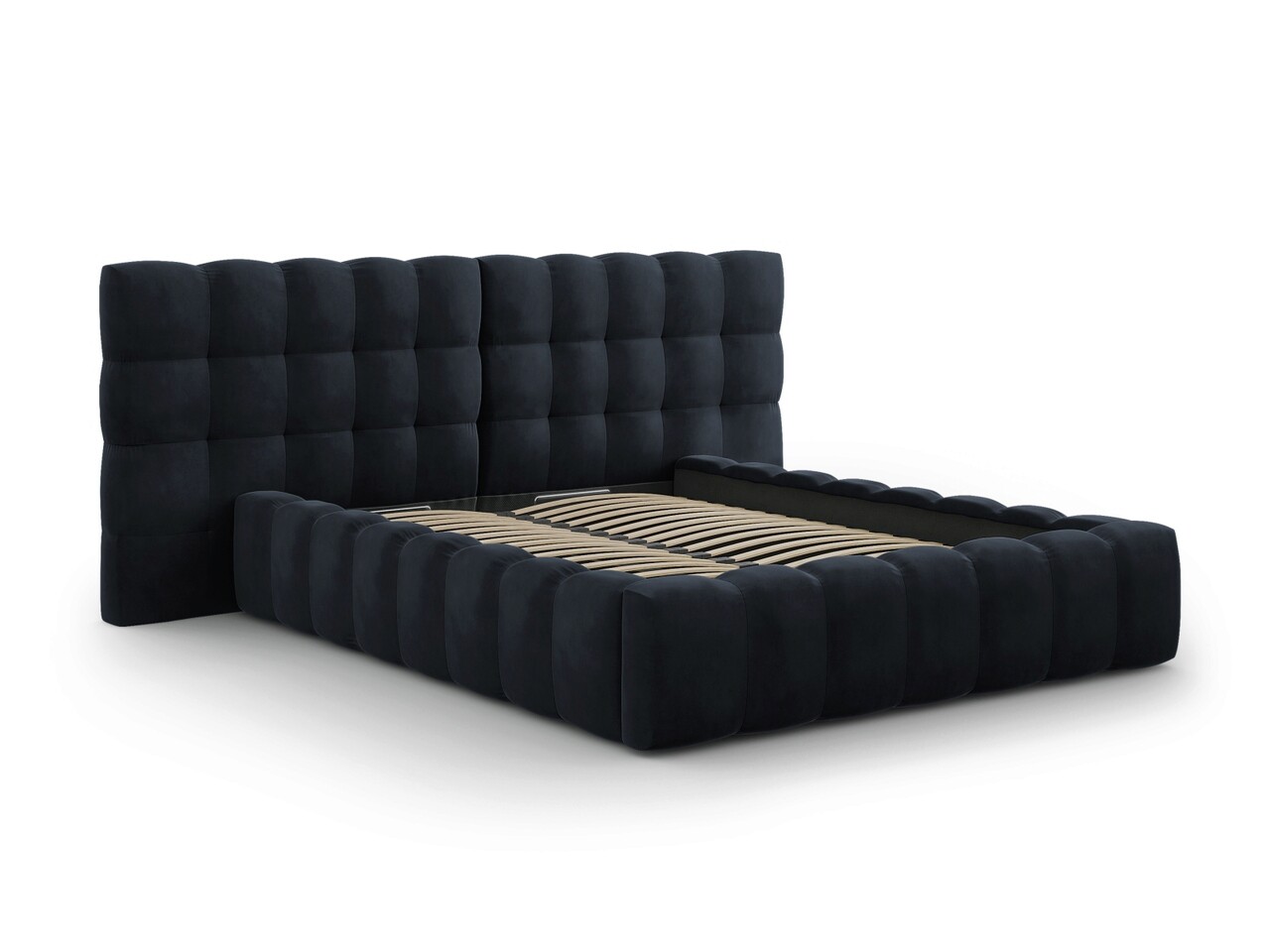 Pat tapitat cu tablie dubla si lada depozitare, Mamaia, Micadoni Home, BL, 140x200 cm, catifea, albastru inchis