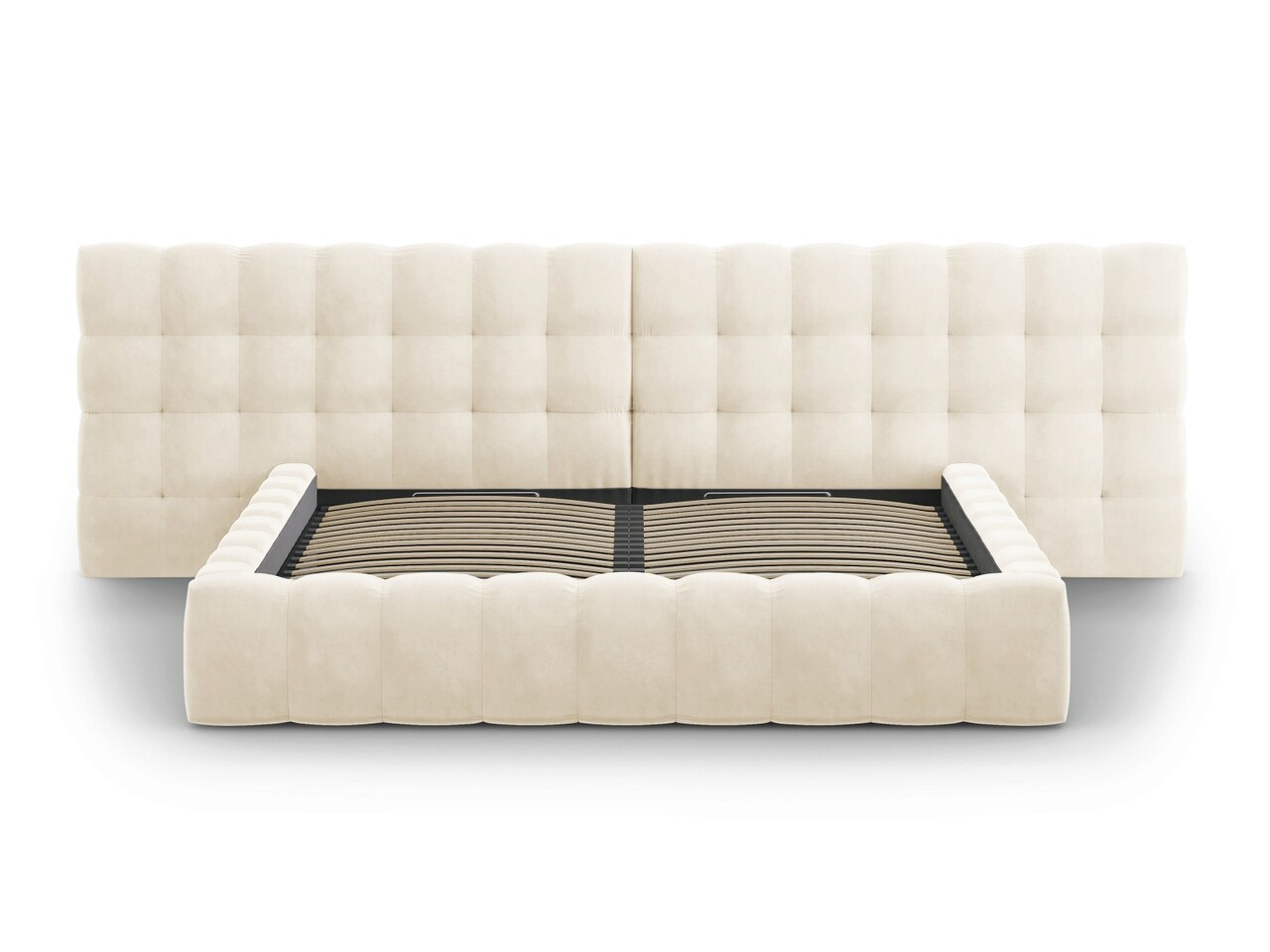 Pat tapitat cu tablie dubla si lada depozitare, Mamaia, Micadoni Home, BL, 200x200 cm, catifea, bej deschis