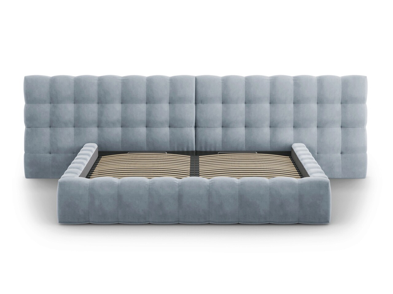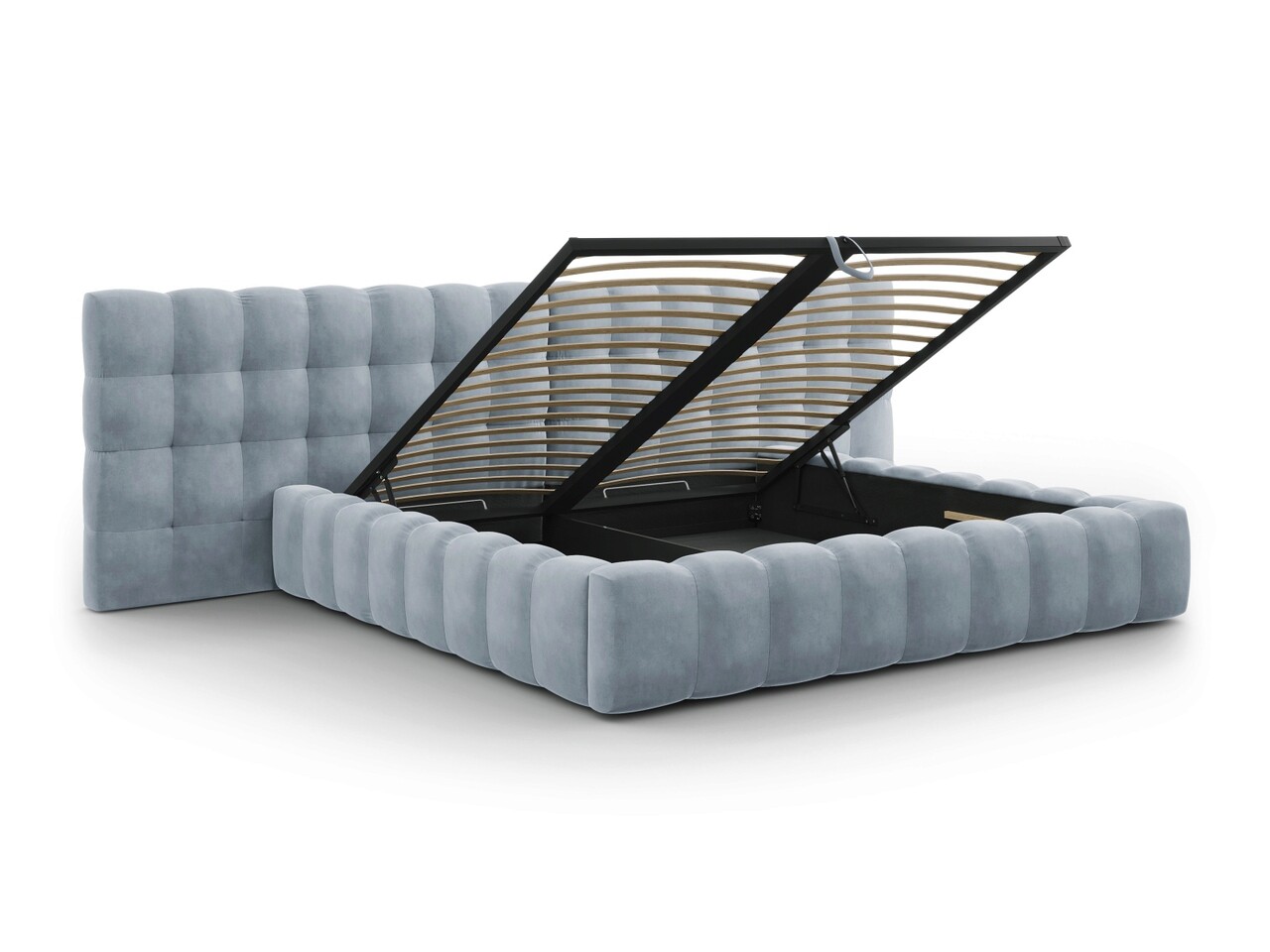 Pat tapitat cu tablie dubla si lada depozitare, Mamaia, Micadoni Home, BL, 200x200 cm, catifea, albastru deschis